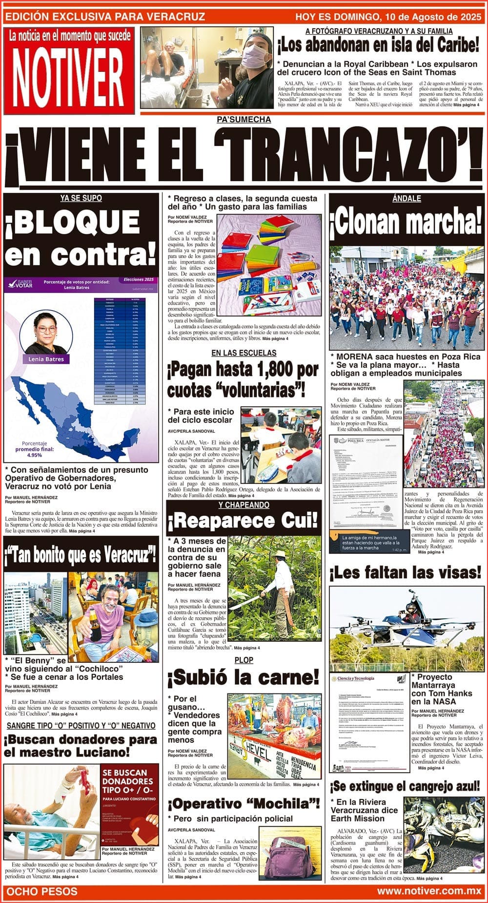 PRIMERA LA PORTADA - DOMINGO 10 DE AGOSTO 2025 PA’SUMECHA - *REGRESO A CLASES, LA SEGUNDA CUESTA DEL AÑO *UN GASTO PARA LAS FAMILIAS 10 agosto 2025