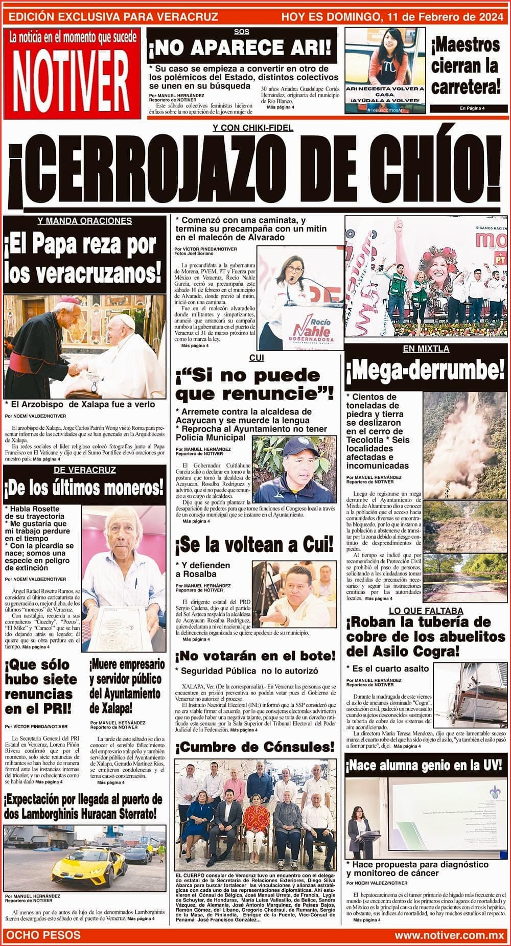 PRIMERA LA PORTADA -DOMINGO 11 DE FEBRERO 2024 Y CON CHIKI-FIDEL - * COMENZÓ CON UNA CAMINATA, Y TERMINA SU PRECAMPAÑA CON UN MITIN EN EL MALECÓN DE ALVARADO 11 febrero 2024 Y LOS ANUNCIOS...Cotice su Anuncio Su Correo Electrónico: Texto: Enviar