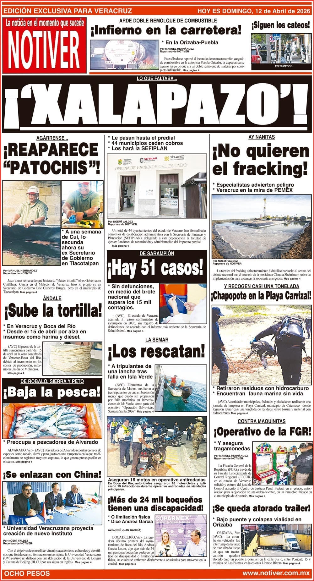 PRIMERA LA PORTADA - DOMINGO 12 DE ABRIL 2026 LO QUE FALTABA... - *LE PASAN HASTA EL PREDIAL *44 MUNICIPIOS CEDEN COBROS *LOS HARÁ LA SEFIPLAN 12 abril 2026