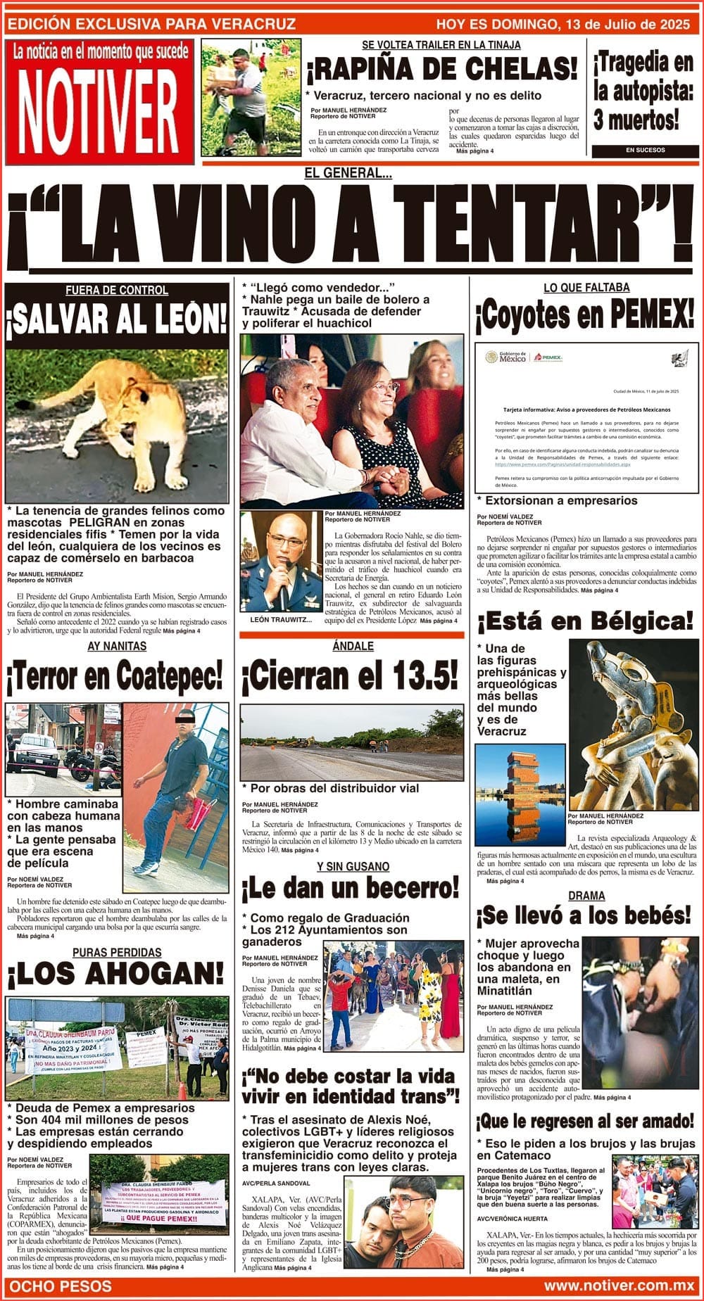 PRIMERA LA PORTADA - DOMINGO 13 DE JULIO 2025 EL GENERAL... - *“LLEGÓ COMO VENDEDOR...” *NAHLE PEGA UN BAILE DE BOLERO A TRAUWITZ *ACUSADA DE DEFENDER Y POLIFERAR EL HUACHICOL 13 julio 2025