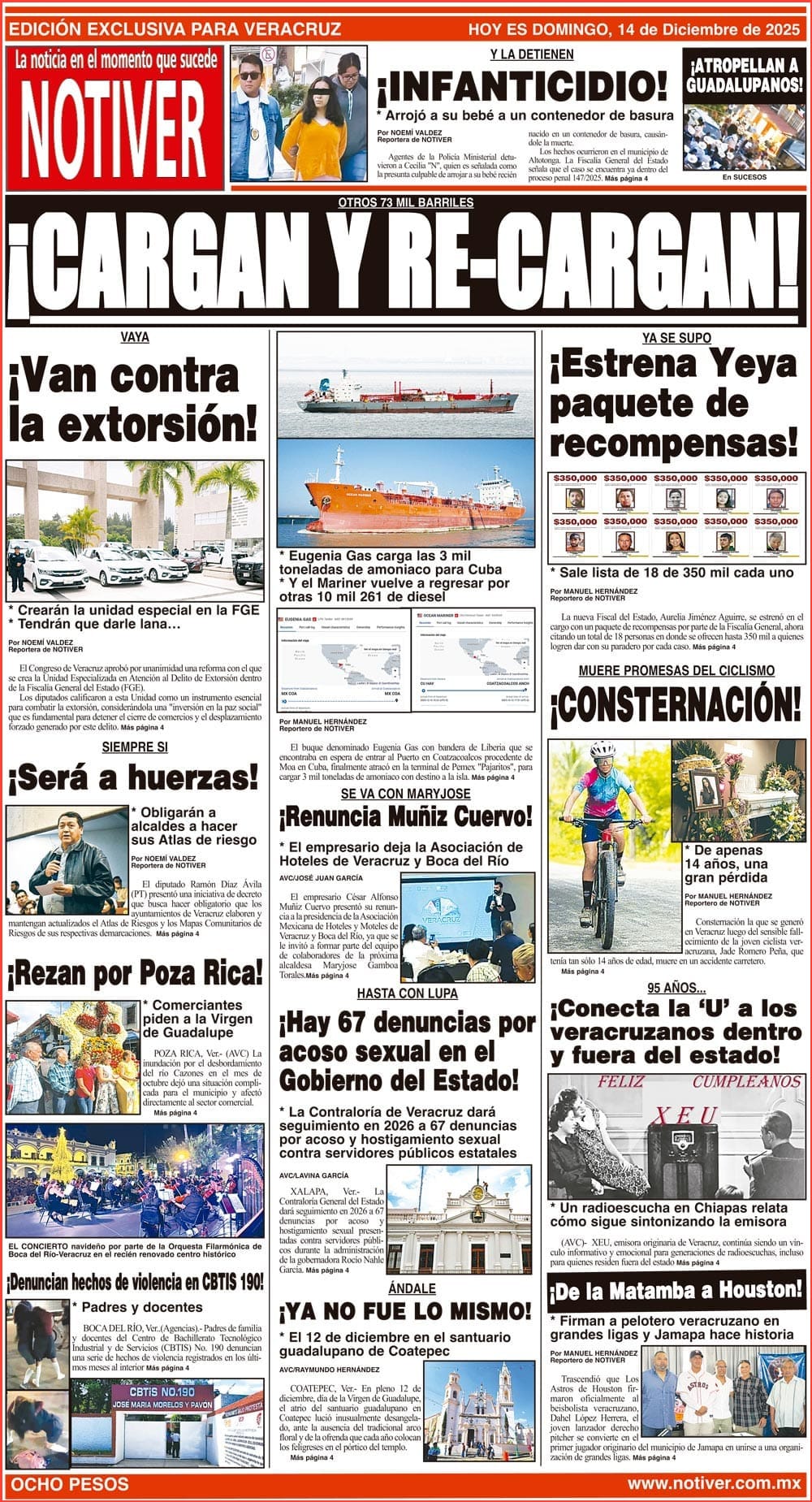 PRIMERA LA PORTADA - DOMINGO 14 DE DICIEMBRE 2025 OTROS 73 MIL BARRILES - *EUGENIA GAS CARGA LAS 3 MIL TONELADAS DE AMONIACO PARA CUBA *Y EL MARINER VUELVE A REGRESAR POR OTRAS 10 MIL 261 DE DIESEL 14 diciembre 2025