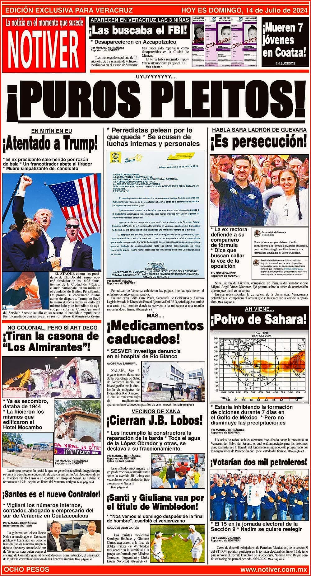 PRIMERA LA PORTADA - DOMINGO 14 DE JULIO 2024 UYUYYYYYYY... - * PERREDISTAS PELEAN POR LO QUE QUEDA * SE ACUSAN DE LUCHAS INTERNAS Y PERSONALES 14 julio 2024