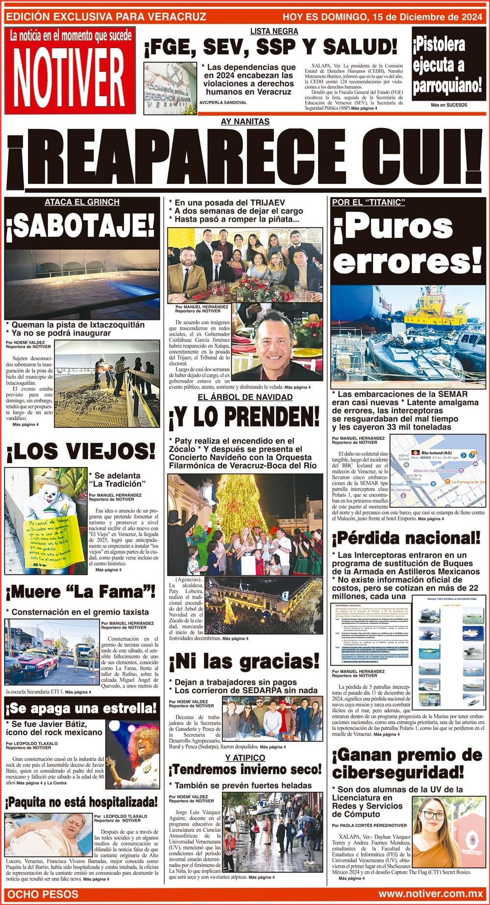PRIMERA LA PORTADA - DOMINGO 15 DE DICIEMBRE 2024 AY NANITAS - *EN UNA POSADA DEL TRIJAEV *A DOS SEMANAS DE DEJAR EL CARGO *HASTA PASÓ A ROMPER LA PIÑATA... 15 diciembre 2024