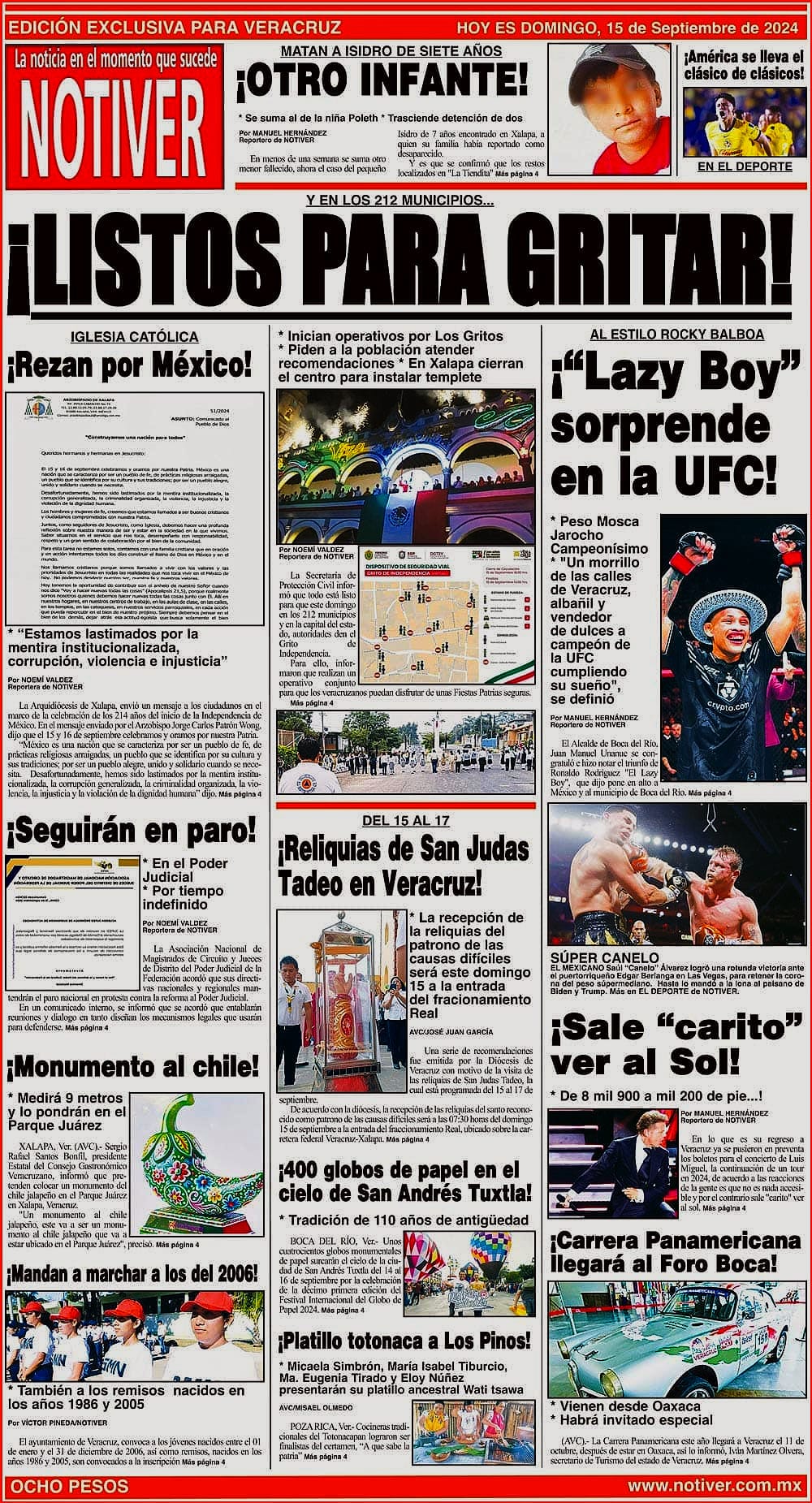 LA PORTADA - DOMINGO 15 DE SEPTIEMBRE 2024