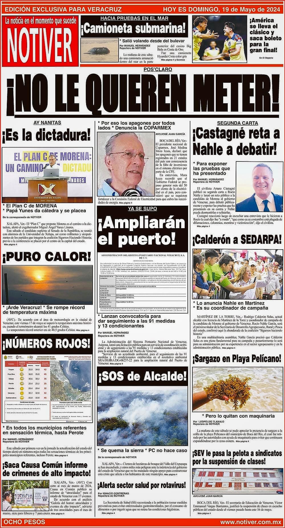 PRIMERA LA PORTADA - DOMINGO 19 DE MAYO 2024 POS’CLARO - * POR ESO LOS APAGONES POR TODOS LADOS * DENUNCIA LA COPARMEX 19 mayo 2024