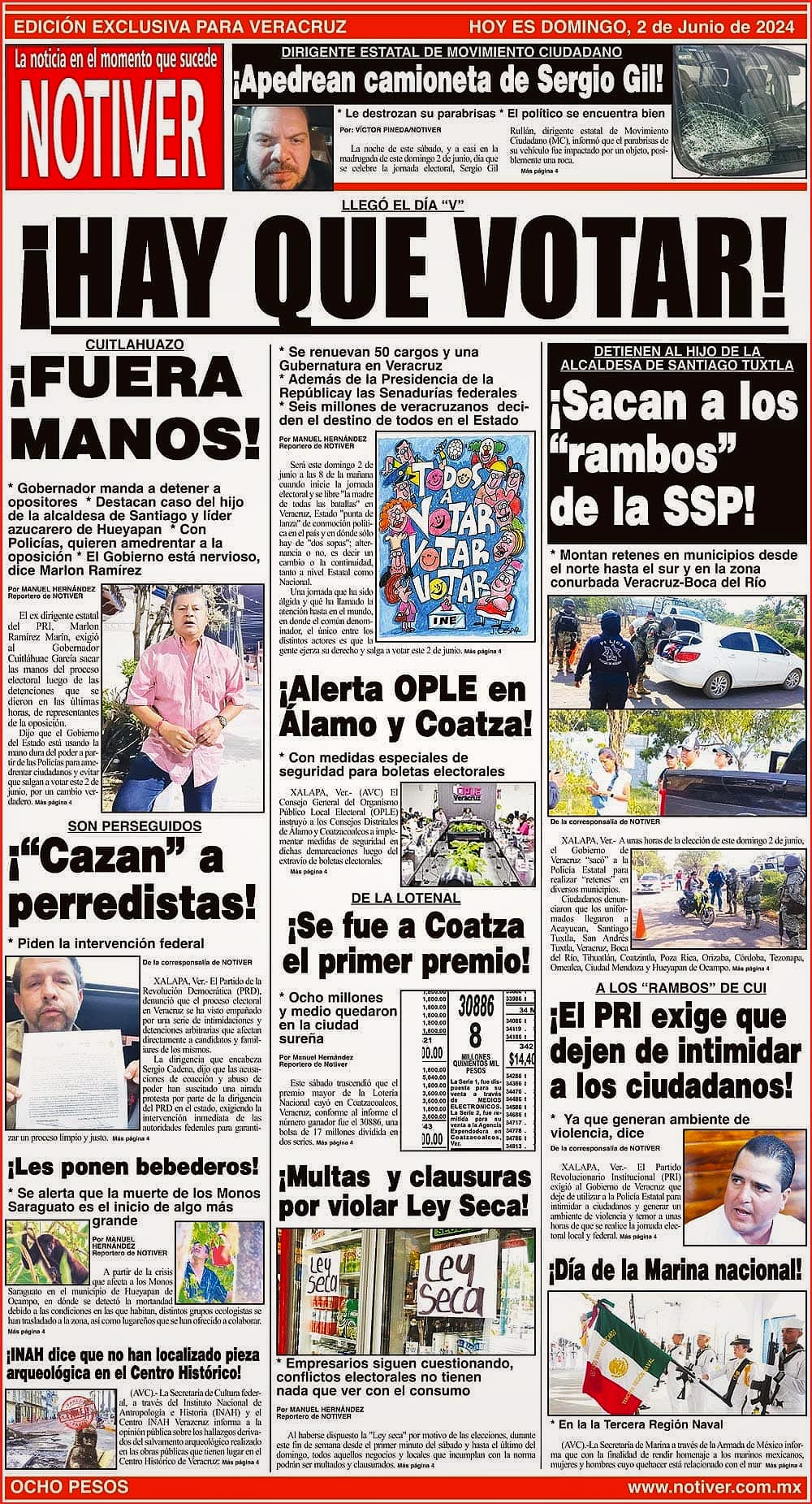 LLEGÓ EL DÍA “V” - * SE RENUEVAN 50 CARGOS Y UNA GUBERNATURA EN VERACRUZ * ADEMÁS DE LA PRESIDENCIA DE LA REPÚBLICAY LAS SENADURÍAS FEDERALES * SEIS MILLONES DE VERACRUZANOS DECIDEN EL DESTINO DE TODOS EN EL ESTADO