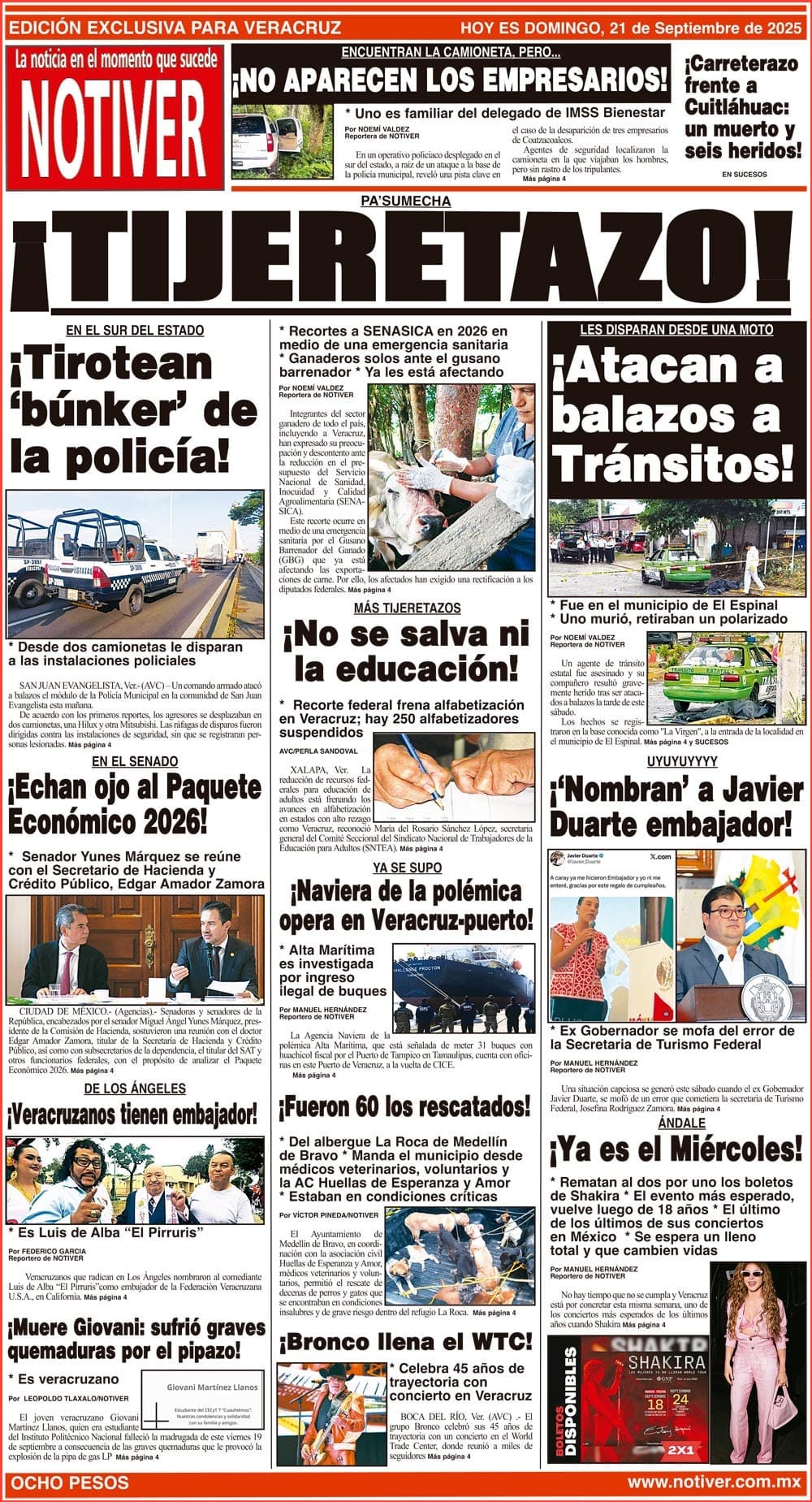 PRIMERA LA PORTADA - DOMINGO 21 DE SEPTIEMBRE 2025 PA’SUMECHA - *RECORTES A SENASICA EN 2026 EN MEDIO DE UNA EMERGENCIA SANITARIA *GANADEROS SOLOS ANTE EL GUSANO BARRENADOR *YA LES ESTÁ AFECTANDO 21 septiembre 2025