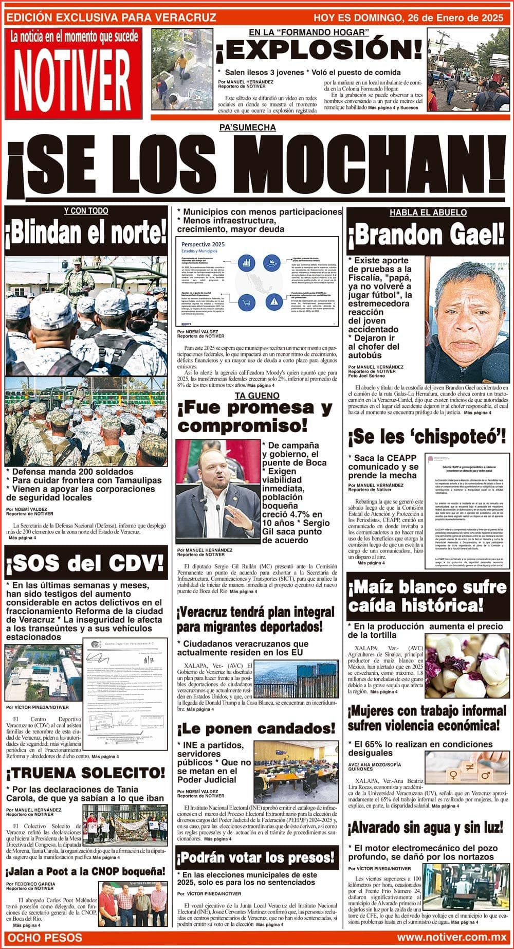 PRIMERA LA PORTADA - DOMINGO 26 DE ENERO 2025 PA’SUMECHA - *MUNICIPIOS CON MENOS PARTICIPACIONES *MENOS INFRAESTRUCTURA, CRECIMIENTO, MAYOR DEUDA 26 enero 2025