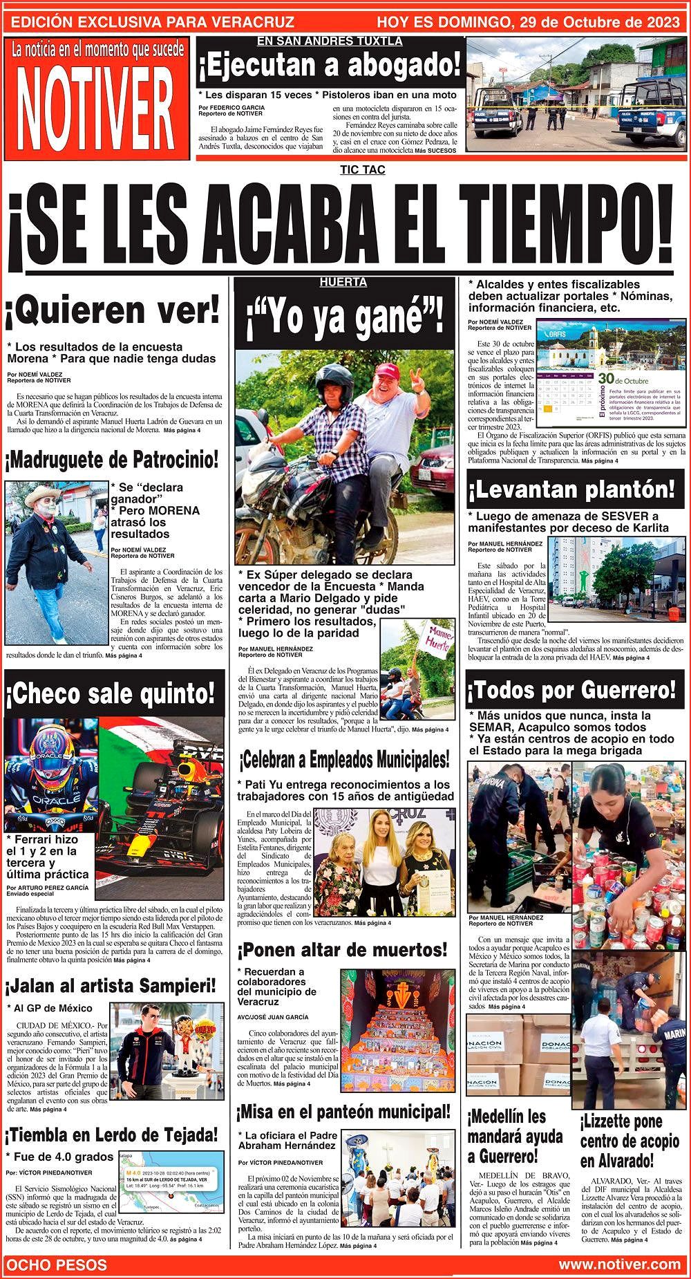 PRIMERA LA PORTADA - DOMINGO, 29 DE OCTUBRE 2023 TIC TAC - * ALCALDES Y ENTES FISCALIZABLES DEBEN ACTUALIZAR PORTALES * NÓMINAS, INFORMACIÓN FINANCIERA, ETC. 29 octubre 2023 Y LOS ANUNCIOS...Cotice su Anuncio Su Correo Electrónico: Texto: Enviar