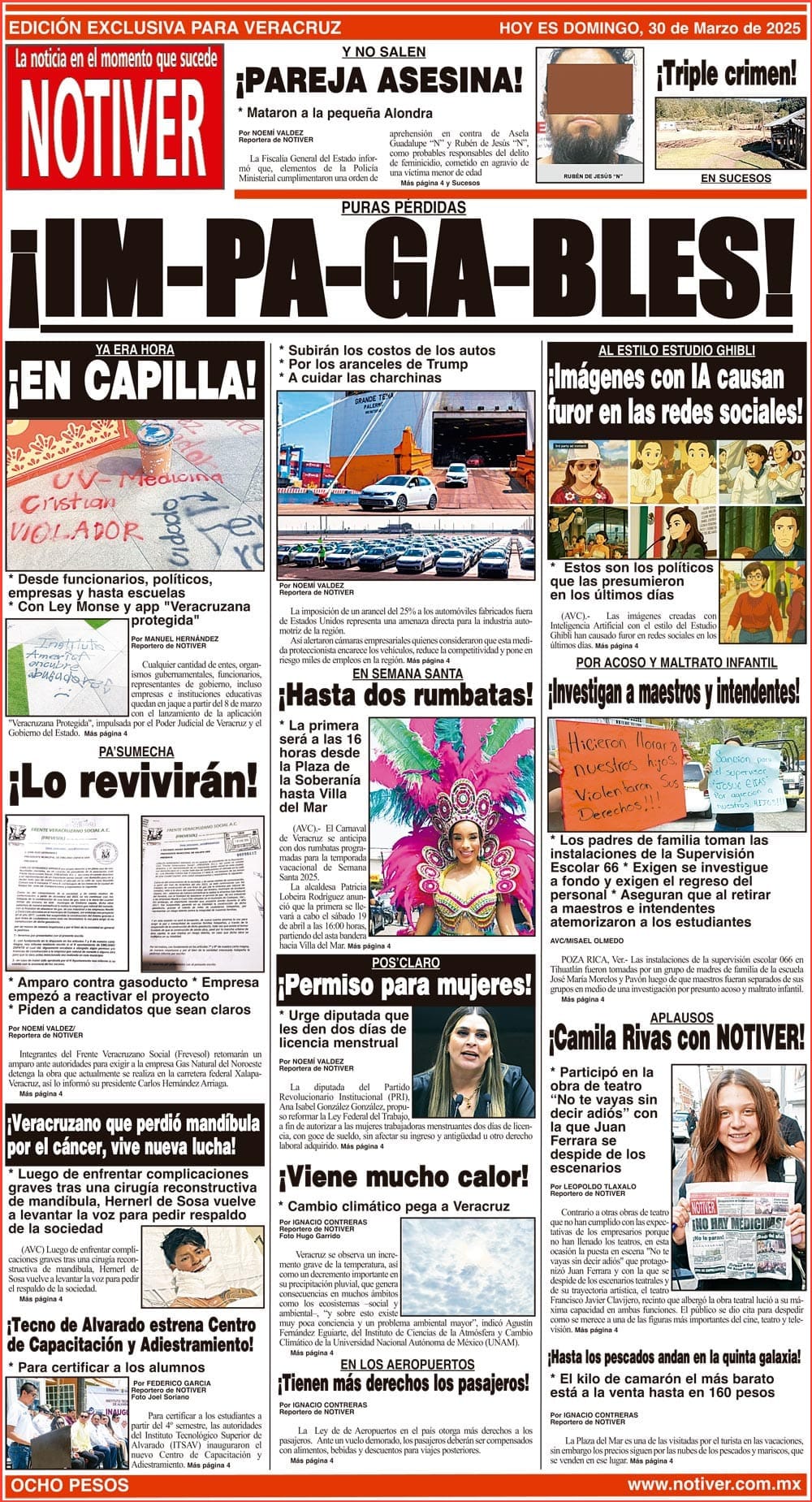 PRIMERA LA PORTADA - DOMINGO 30 DE MARZO 2025 PURAS PÉRDIDAS - *SUBIRÁN LOS COSTOS DE LOS AUTOS *POR LOS ARANCELES DE TRUMP *A CUIDAR LAS CHARCHINAS 30 marzo 2025
