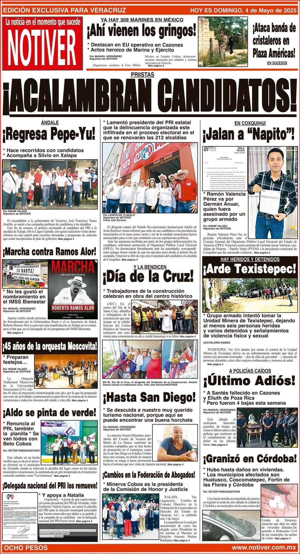 PRIMERA LA PORTADA - DOMINGO 4 DE MAYO 2025 PRIISTAS - *LAMENTÓ PRESIDENTE DEL PRI ESTATAL QUE LA DELINCUENCIA ORGANIZADA ESTE INFILTRADA EN EL PROCESO ELECTORAL EN EL QUE SE RENOVARÁN LAS 212 ALCALDÍAS 4 mayo 2025