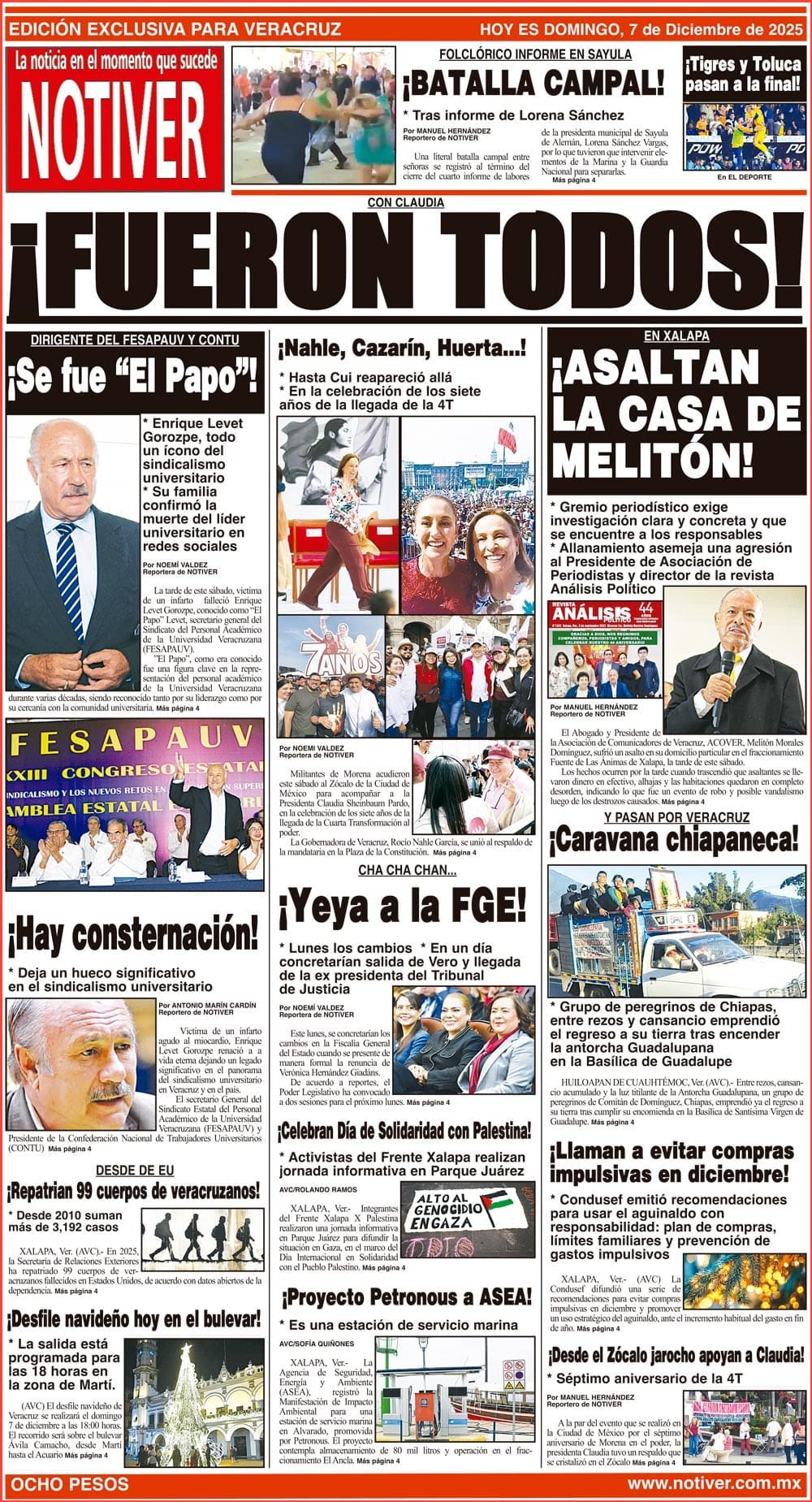 PRIMERA LA PORTADA - DOMINGO 7 DE DICIEMBRE 2025 CON CLAUDIA - ¡NAHLE, CAZARÍN, HUERTA...! *HASTA CUI REAPARECIÓ ALLÁ *EN LA CELEBRACIÓN DE LOS SIETE AÑOS DE LA LLEGADA DE LA 4T 7 diciembre 2025