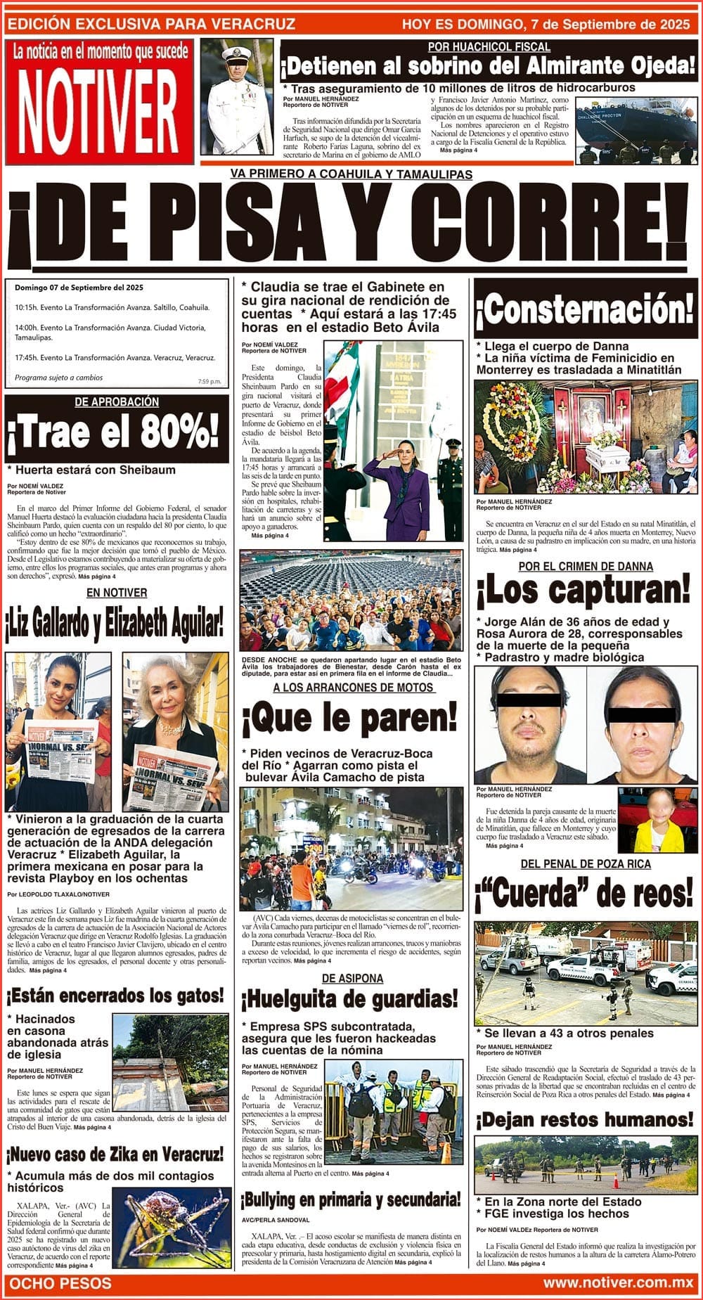 PRIMERA LA PORTADA - DOMINGO 7 DE SEPTIEMBRE 2025 VA PRIMERO A COAHUILA Y TAMAULIPAS - *CLAUDIA SE TRAE EL GABINETE EN SU GIRA NACIONAL DE RENDICIÓN DE CUENTAS *AQUÍ ESTARÁ A LAS 17:45 HORAS EN EL ESTADIO BETO ÁVILA 7 septiembre 2025