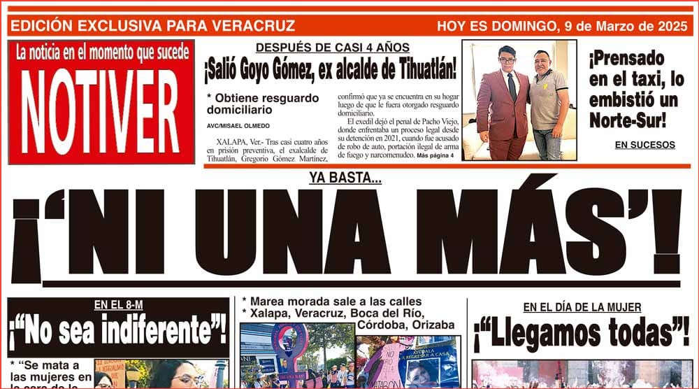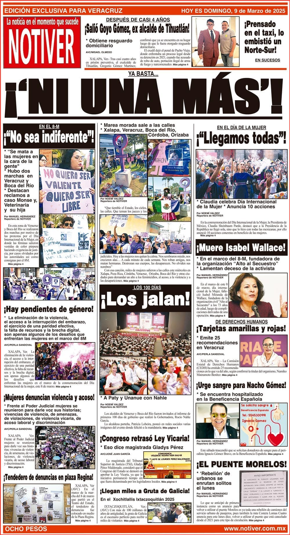 PRIMERA LA PORTADA - DOMINGO 9 DE MARZO 2025 YA BASTA... - *MAREA MORADA SALE A LAS CALLES *XALAPA, VERACRUZ, BOCA DEL RÍO, CÓRDOBA, ORIZABA 9 marzo 2025