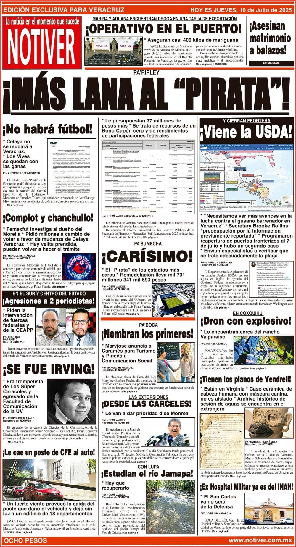PRIMERA LA PORTADA - JUEVES 10 DE JULIO 2025 PA’RIPLEY - * LE PRESUPUESTAN 37 MILLONES DE PESOS MÁS * SE TRATA DE RECURSOS DE UN BONO CUPÓN CERO Y DE RENDIMIENTOS DE PARTICIPACIONES FEDERALES 10 julio 2025