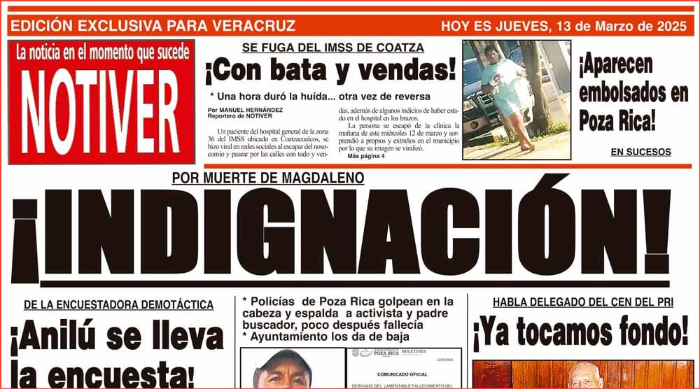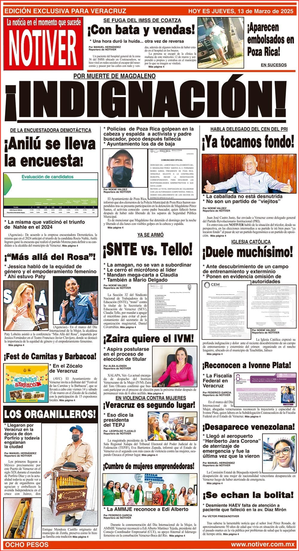 PRIMERA LA PORTADA - JUEVES 13 DE MARZO 2025 POR MUERTE DE MAGDALENO - *POLICÍAS DE POZA RICA GOLPEAN EN LA CABEZA Y ESPALDA A ACTIVISTA Y PADRE BUSCADOR, POCO DESPUÉS FALLECÍA *AYUNTAMIENTO LOS DA DE BAJA 13 marzo 2025