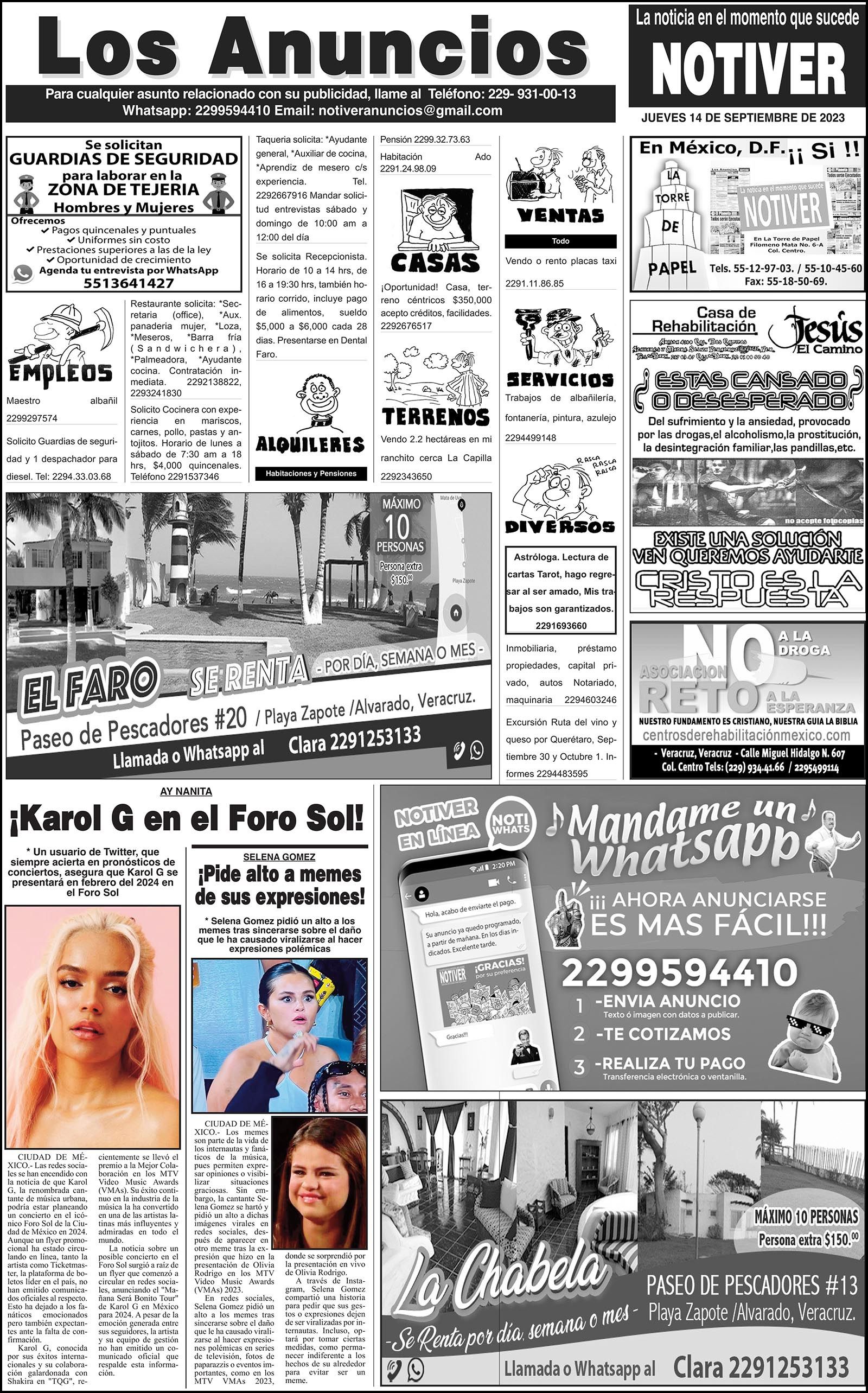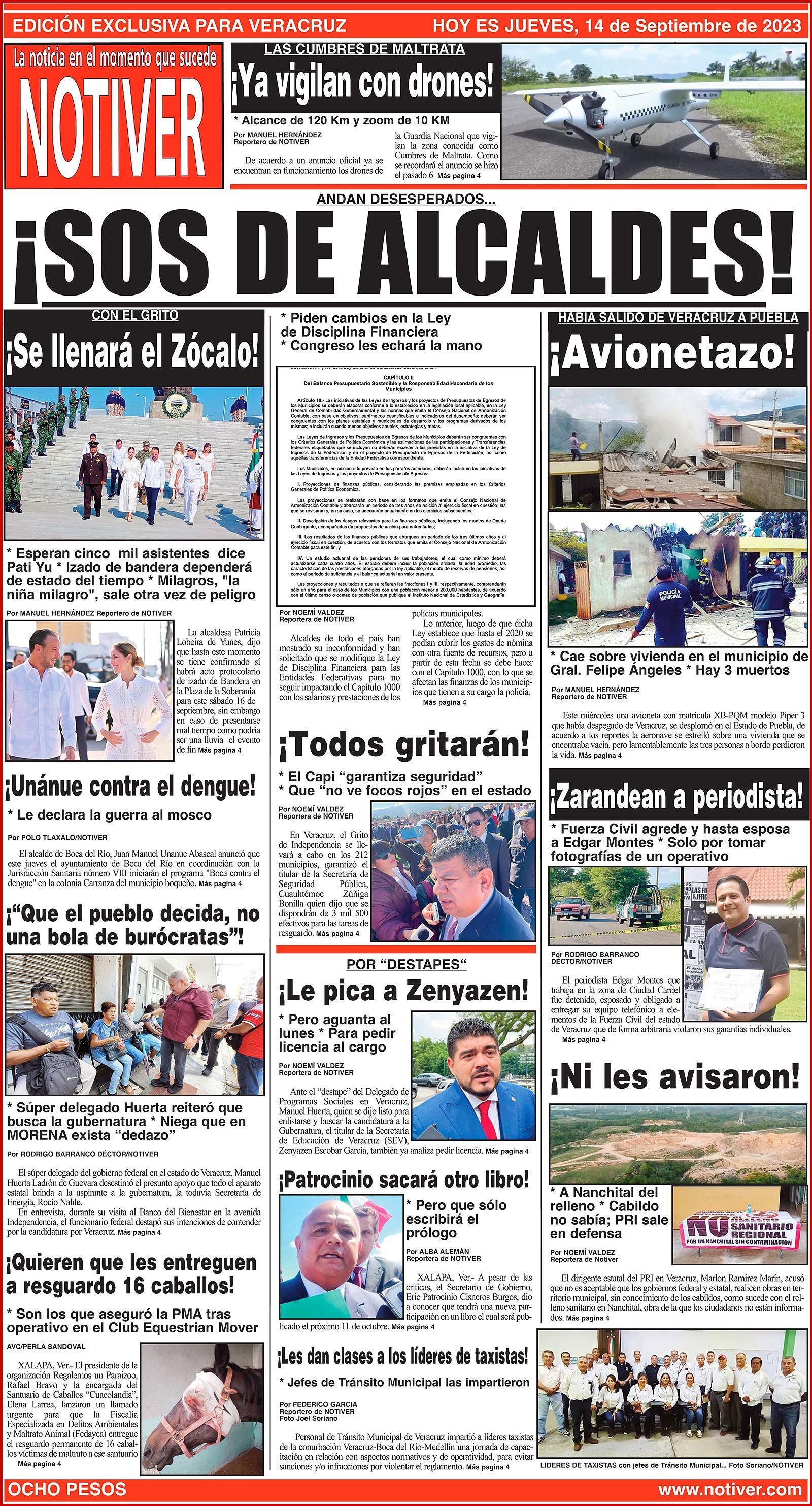PRIMERA LA PORTADA - JUEVES, 14 DE SEPTIEMBRE 2023 ANDAN DESESPERADOS... - * PIDEN CAMBIOS EN LA LEY DE DISCIPLINA FINANCIERA * CONGRESO LES ECHARÁ LA MANO 14 septiembre 2023 Y LOS ANUNCIOS... Cotice su Anuncio Su Correo Electrónico: Texto: Enviar