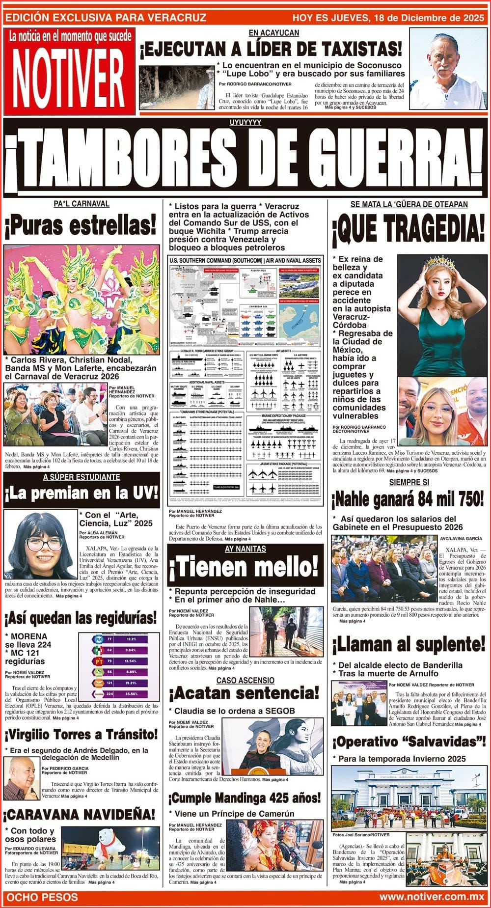 PRIMERA LA PORTADA - JUEVES 18 DE DICIEMBRE 2025 UYUYYYY - *LISTOS PARA LA GUERRA *VERACRUZ ENTRA EN LA ACTUALIZACIÓN DE ACTIVOS DEL COMANDO SUR DE USS, CON EL BUQUE WICHITA *TRUMP ARRECIA PRESIÓN CONTRA VENEZUELA Y BLOQUEO A BLOQUES PETROLEROS 18 diciembre 2025