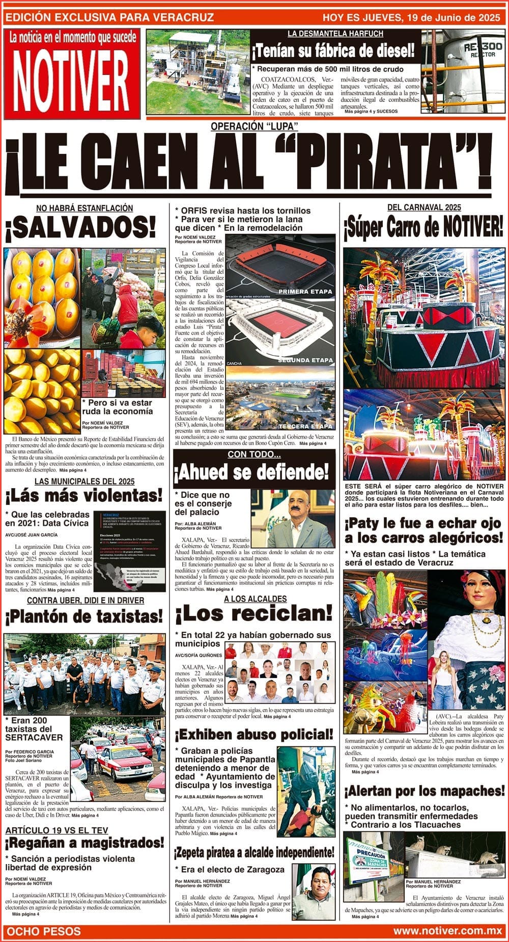 PRIMERA LA PORTADA - JUEVES 19 DE JUNIO 2025 OPERACIÓN “LUPA” - *ORFIS REVISA HASTA LOS TORNILLOS *PARA VER SI LE METIERON LA LANA QUE DICEN *EN LA REMODELACIÓN 19 junio 2025
