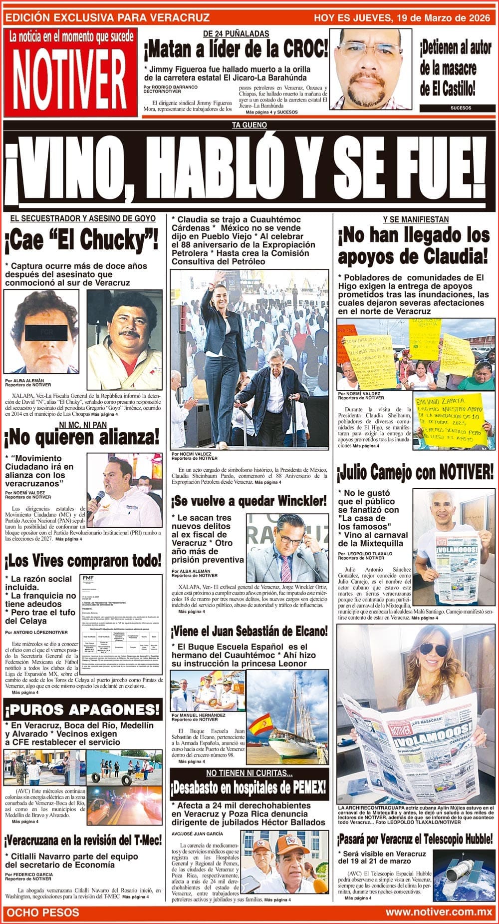 PRIMERA LA PORTADA - JUEVES 19 DE MARZO 2026 TA GUENO - *CLAUDIA SE TRAJO A CUAUHTÉMOC CÁRDENAS *MÉXICO NO SE VENDE DIJO EN PUEBLO VIEJO *AL CELEBRAR EL 88 ANIVERSARIO DE LA EXPROPIACIÓN PETROLERA *HASTA CREA LA COMISIÓN CONSULTIVA DEL PETRÓLEO 19 marzo 2026