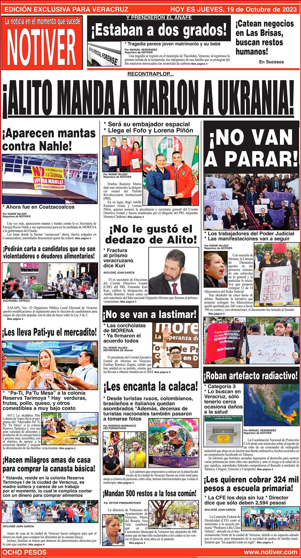 PRIMERA LA PORTADA - JUEVES, 19 DE OCTUBRE 2023 RECONTRAPLOP… - * SERÁ SU EMBAJADOR ESPACIAL * LLEGA EL FOFO Y LORENA PIÑÓN 19 octubre 2023 Y LOS ANUNCIOS...Cotice su Anuncio Su Correo Electrónico: Texto: Enviar