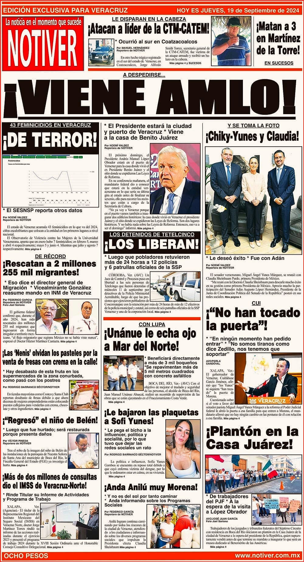 LA PORTADA - JUEVES 19 DE SEPTIEMBRE 2024