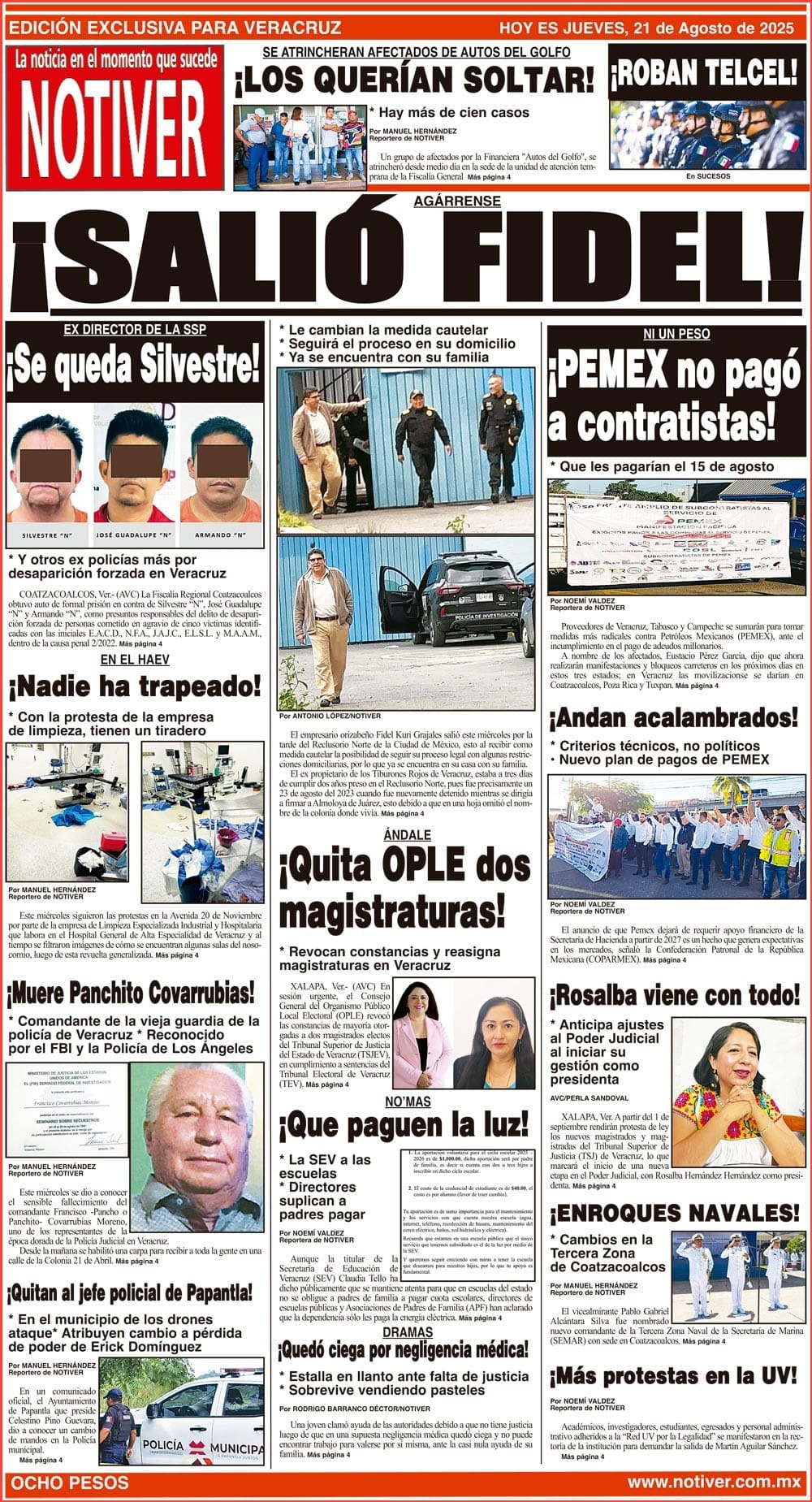PRIMERA LA PORTADA - JUEVES 21 DE AGOSTO 2025 AGÁRRENSE - *LE CAMBIAN LA MEDIDA CAUTELAR *SEGUIRÁ EL PROCESO EN SU DOMICILIO *YA SE ENCUENTRA CON SU FAMILIA 21 agosto 2025