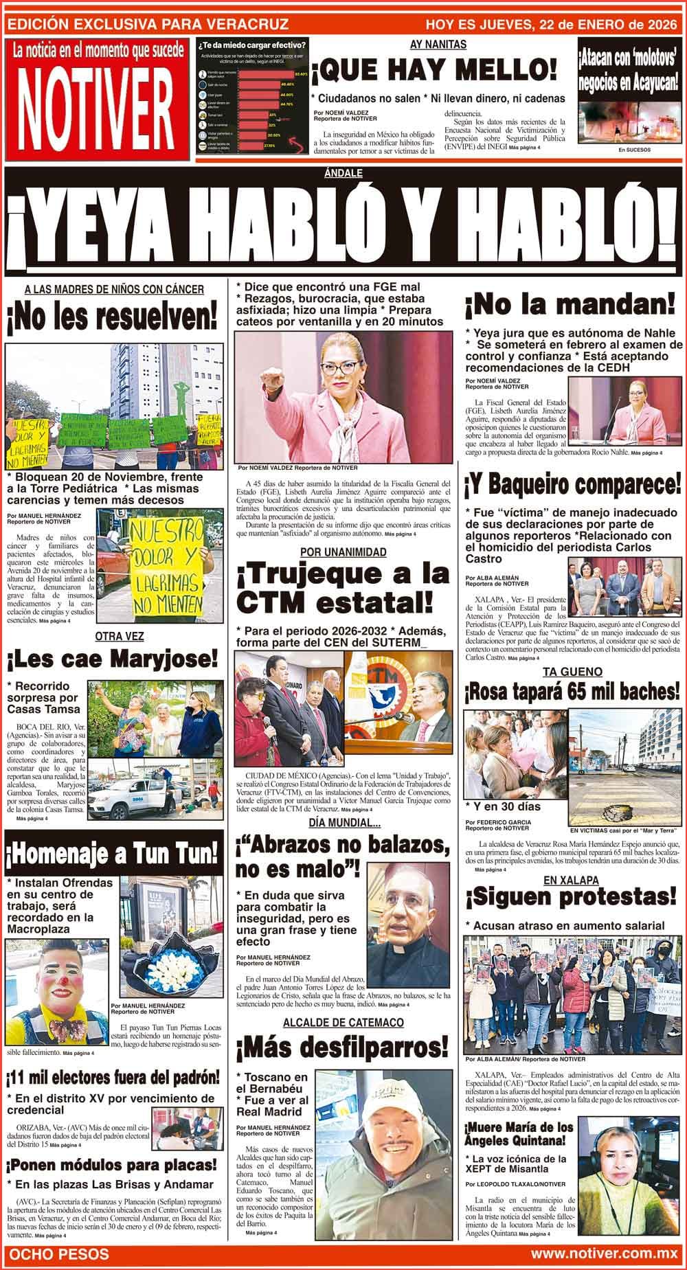 PRIMERA LA PORTADA - JUEVES 22 DE ENERO 2026 ÁNDALE - *DICE QUE ENCONTRÓ UNA FGE MAL *REZAGOS, BUROCRACIA, QUE ESTABA ASFIXIADA; HIZO UNA LIMPIA *PREPARA CATEOS POR VENTANILLA Y EN 20 MINUTOS 22 enero 2026