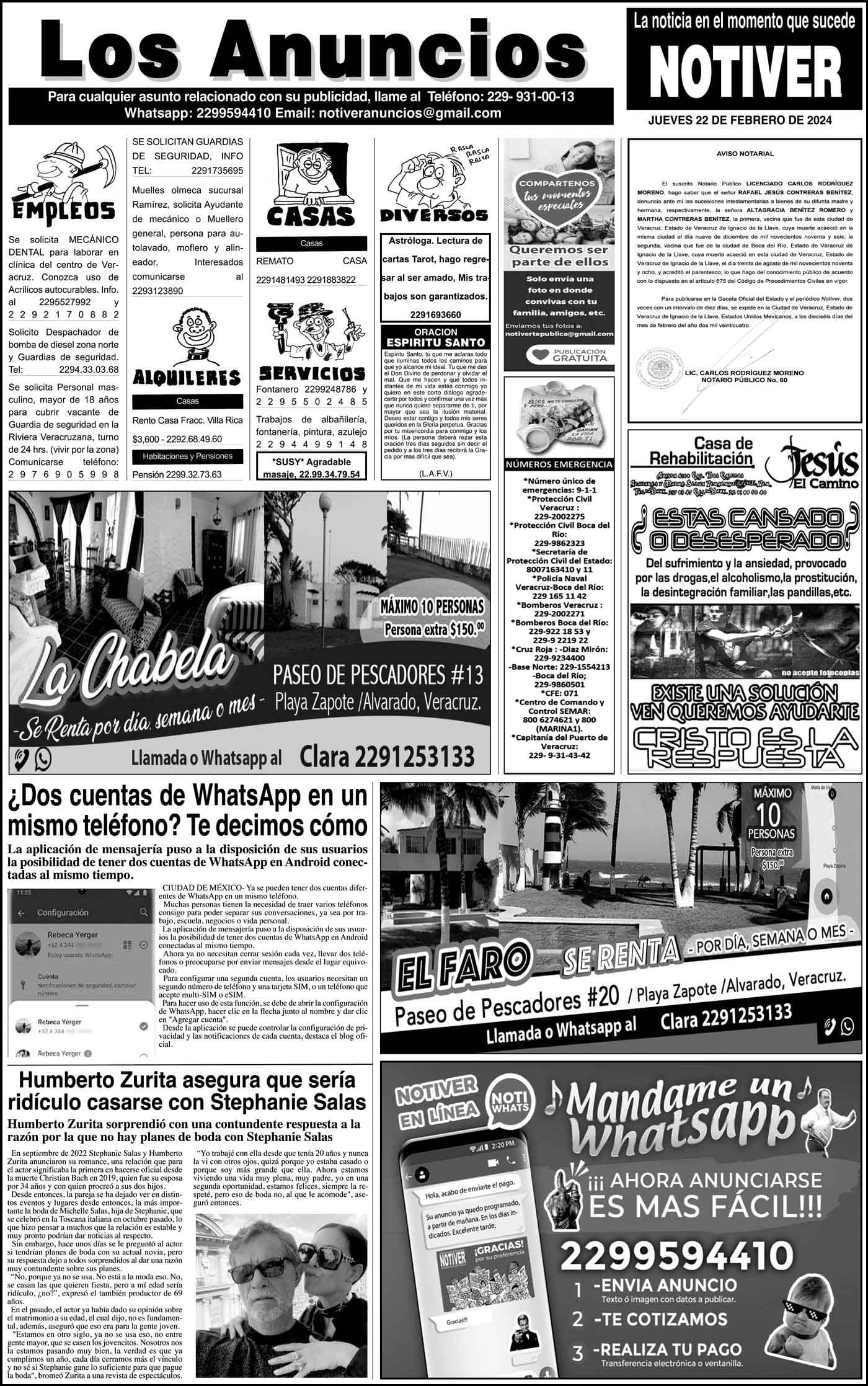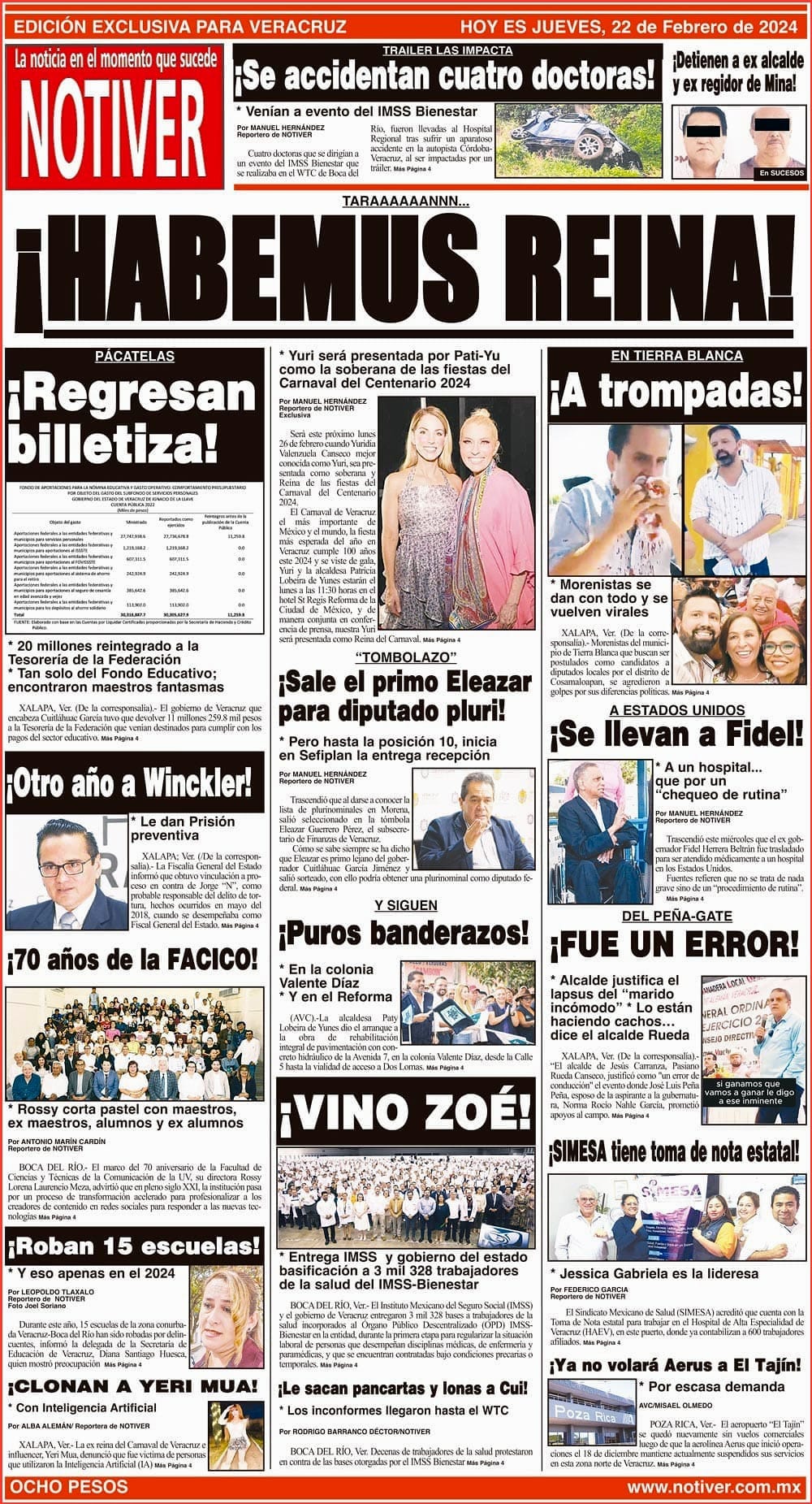 PRIMERA LA PORTADA - JUEVES 22 DE FEBRERO 2024 TARAAAAAANNN... - * YURI SERÁ PRESENTADA POR PATI-YU COMO LA SOBERANA DE LAS FIESTAS DEL CARNAVAL DEL CENTENARIO 2024 22 febrero 2024 Y LOS ANUNCIOS...Cotice su Anuncio Su Correo Electrónico: Texto: Enviar