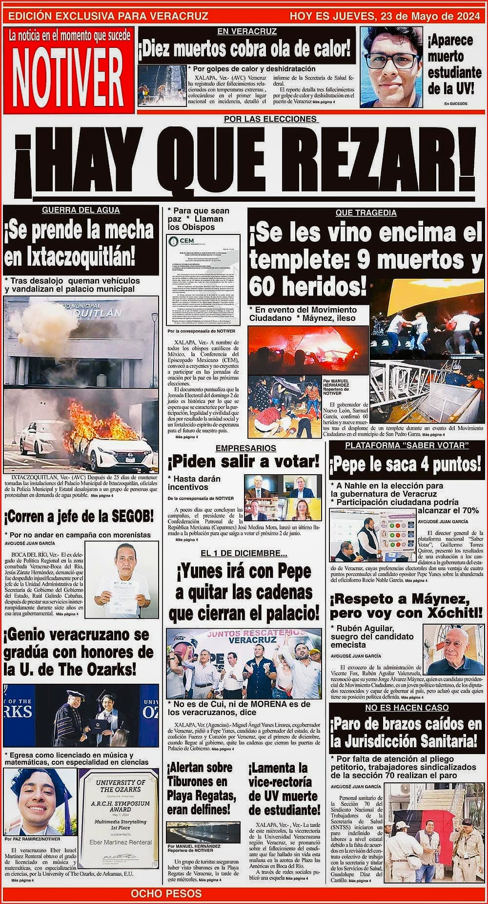 PRIMERA LA PORTADA - JUEVES 23 DE MAYO 2024 POR LAS ELECCIONES - * PARA QUE SEAN PAZ * LLAMAN LOS OBISPOS 23 mayo 2024