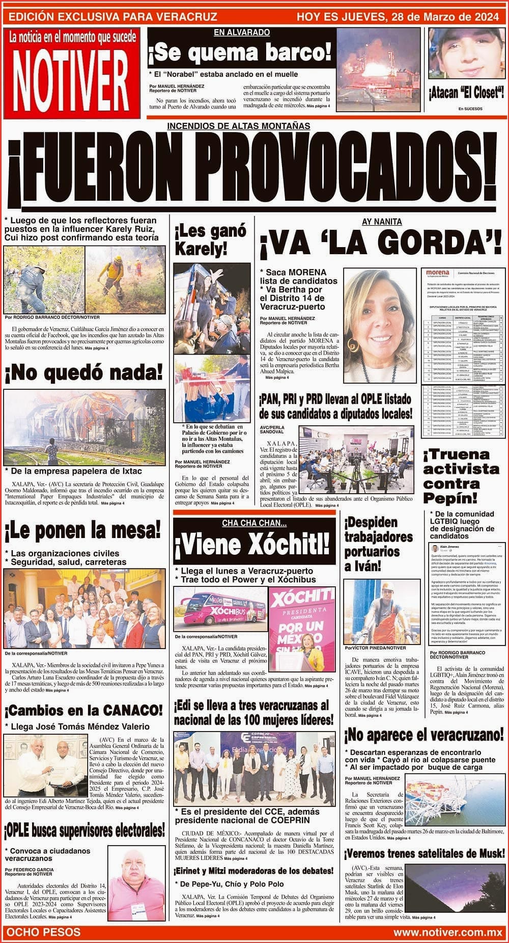 PRIMERA LA PORTADA - JUEVES 28 DE MARZO 2024 INCENDIOS DE ALTAS MONTAÑAS - * LUEGO DE QUE LOS REFLECTORES FUERAN PUESTOS EN LA INFLUENCER KARELY RUIZ, CUI HIZO POST CONFIRMANDO ESTA TEORÍA 28 marzo 2024 Y LOS ANUNCIOS...Cotice su Anuncio Su Correo Electrónico: Texto: Enviar