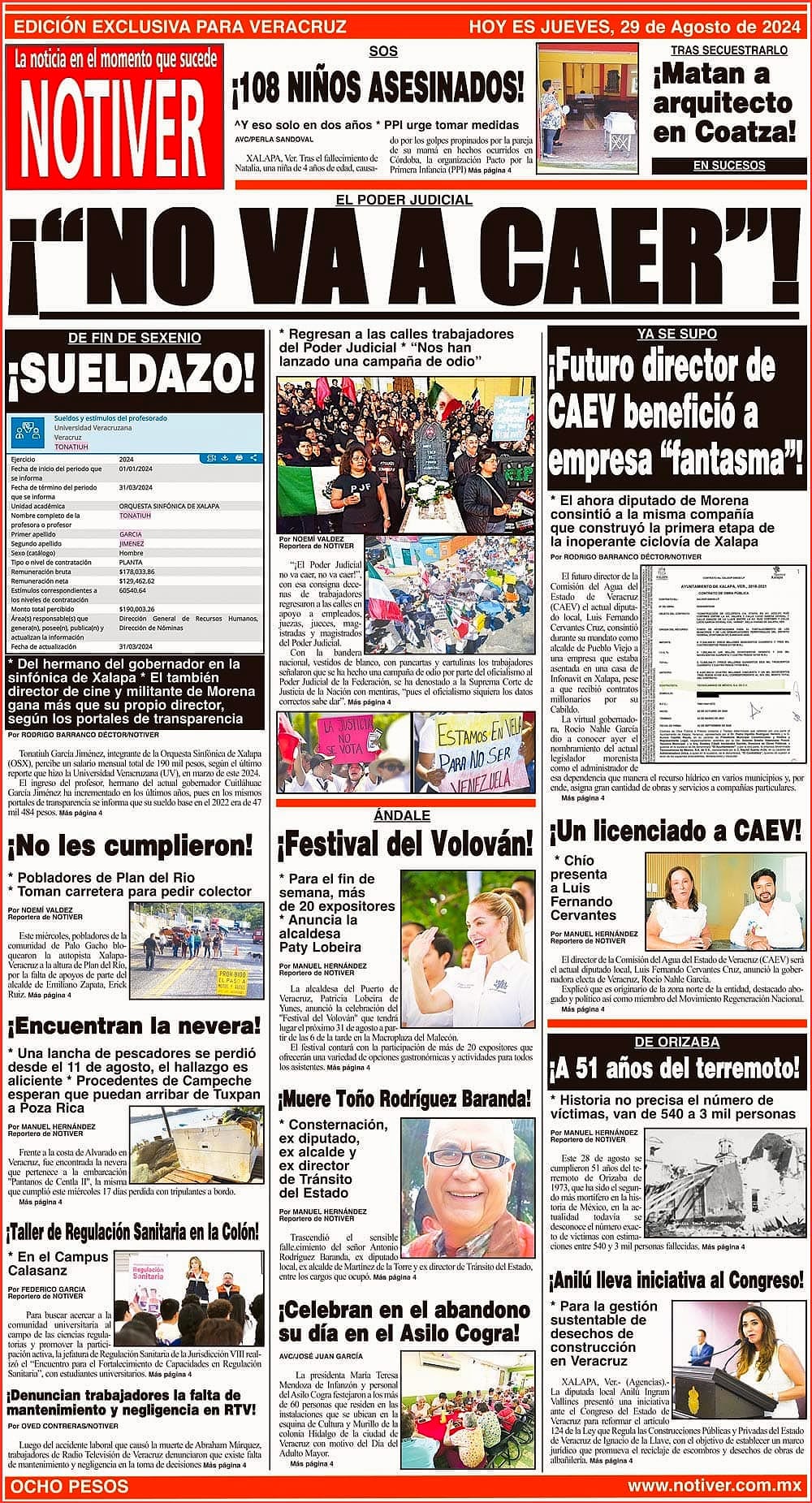 PRIMERA LA PORTADA - JUEVES 29 DE AGOSTO 2024 EL PODER JUDICIAL - * REGRESAN A LAS CALLES TRABAJADORES DEL PODER JUDICIAL * “NOS HAN LANZADO UNA CAMPAÑA DE ODIO” 29 agosto 2024