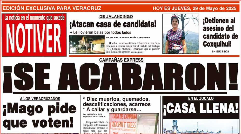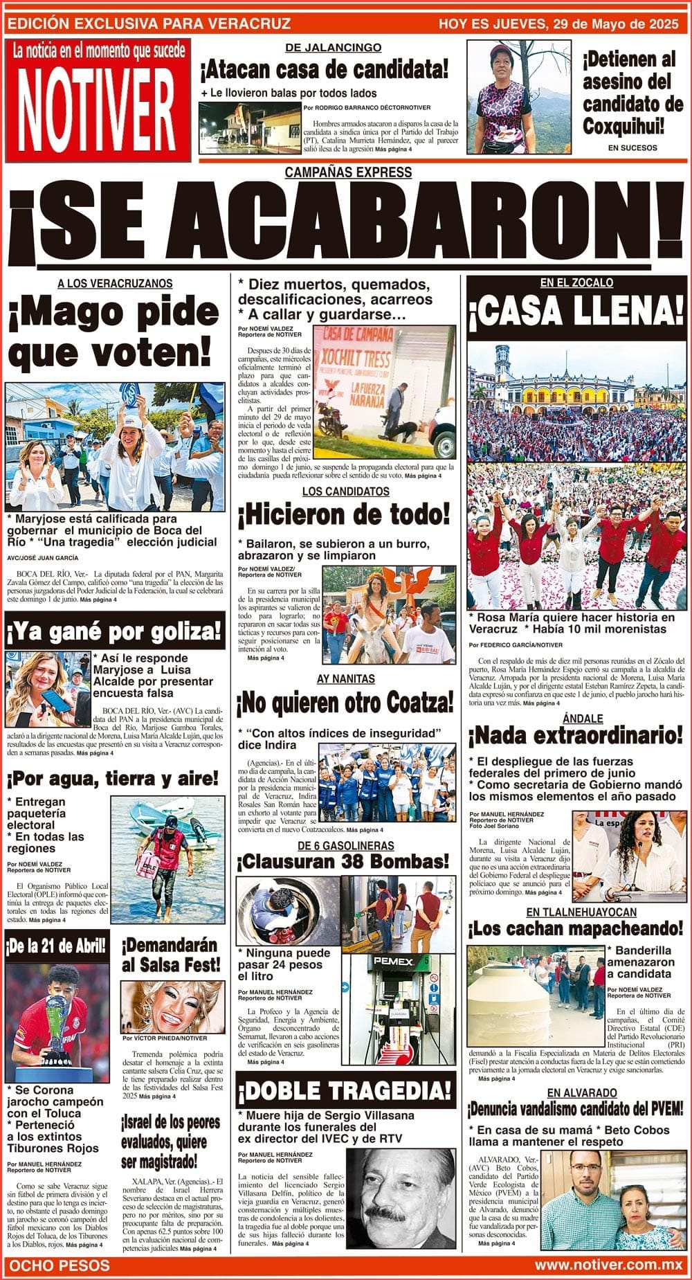 PRIMERA LA PORTADA - JUEVES 29 DE MAYO 2025 CAMPAÑAS EXPRESS - *DIEZ MUERTOS, QUEMADOS, DESCALIFICACIONES, ACARREOS *A CALLAR Y GUARDARSE… 29 mayo 2025