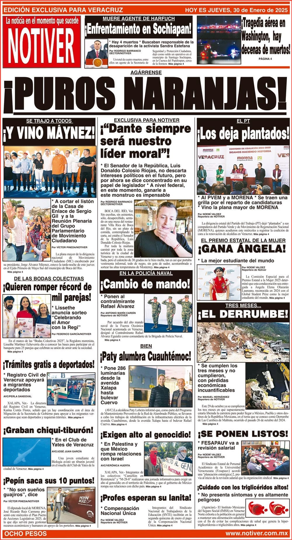 PRIMERA LA PORTADA - JUEVES 30 DE ENERO 2025 AGÁRRENSE - *SE TRAJO A TODOS *¡Y VINO MÁYNEZ! *A CORTAR EL LISTÓN DE LA CASA DE ENLACE DE SERGIO GIL Y A LA REUNIÓN PLENARIA DEL GRUPO PARLAMENTARIO DE MOVIMIENTO CIUDADANO 30 enero 2025