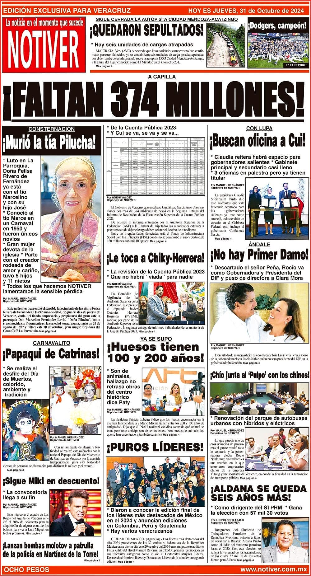 PRIMERA LA PORTADA - JUEVES 31 DE OCTUBRE 2024 A CAPILLA - *DE LA CUENTA PÚBLICA 2023 *Y CUI SE VA, SE VA Y SE VA... 31 octubre 2024