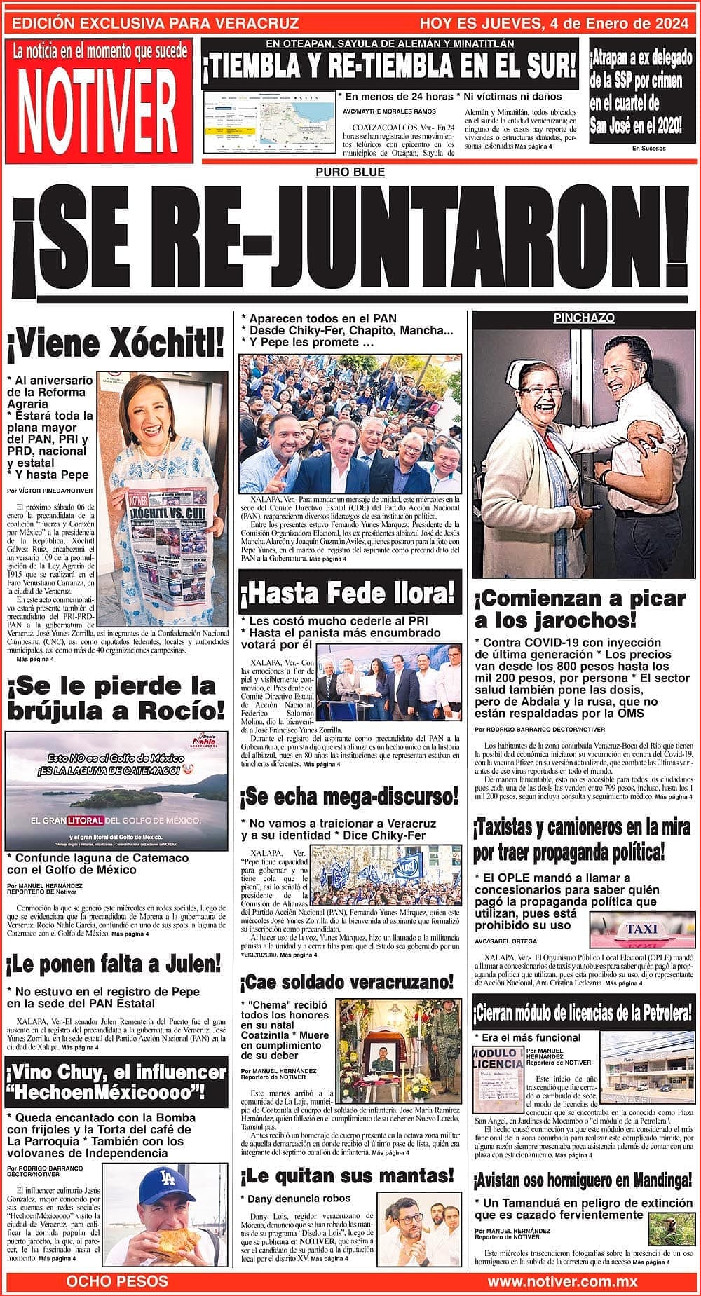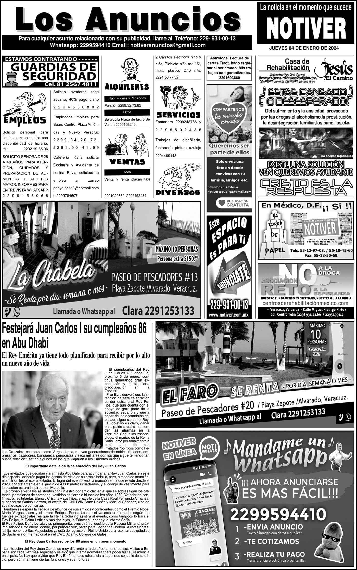 PRIMERA LA PORTADA - JUEVES 4 DE ENERO 2024 PURO BLUE - * APARECEN TODOS EN EL PAN * DESDE CHIKY-FER, CHAPITO, MANCHA... * Y PEPE LES PROMETE … 4 enero 2024 Y LOS ANUNCIOS...Cotice su Anuncio Su Correo Electrónico: Texto: Enviar