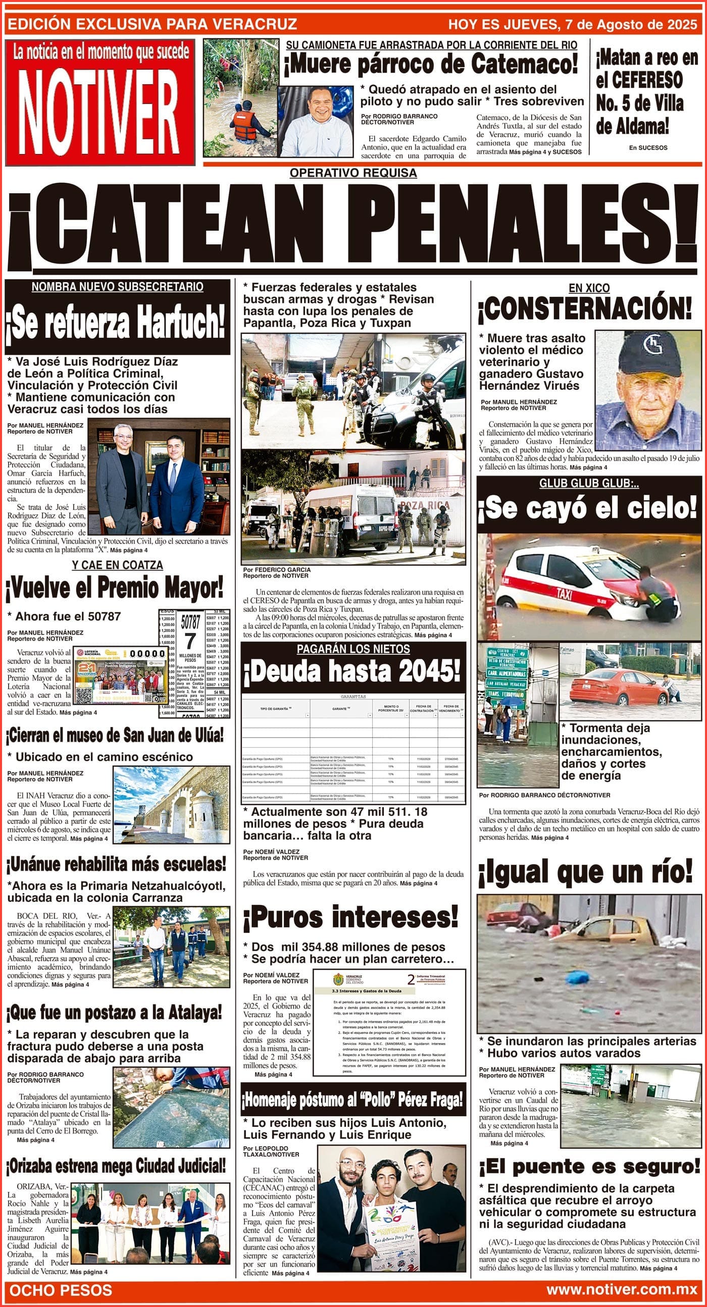 PRIMERA LA PORTADA - JUEVES 5 DE AGOSTO 2025 OPERATIVO REQUISA - *FUERZAS FEDERALES Y ESTATALES BUSCAN ARMAS Y DROGAS *REVISAN HASTA CON LUPA LOS PENALES DE PAPANTLA, POZA RICA Y TUXPAN 7 agosto 2025