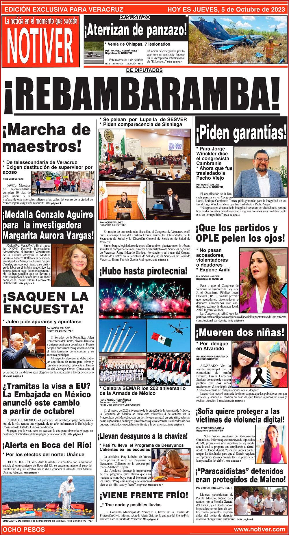 PRIMERA LA PORTADA - JUEVES, 5 DE OCTUBRE 2023 DE DIPUTADOS - * SE PELEAN POR LUPE LA DE SESVER * PIDEN COMPARECENCIA DE SISNIEGA 5 octubre 2023 Y LOS ANUNCIOS...Cotice su Anuncio Su Correo Electrónico: Texto: Enviar