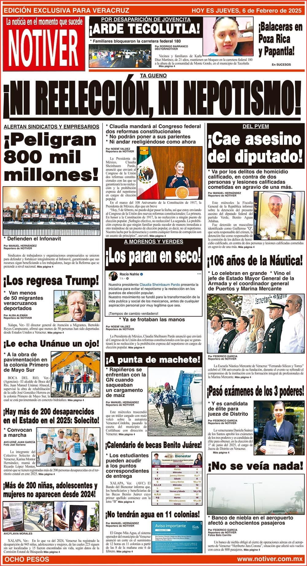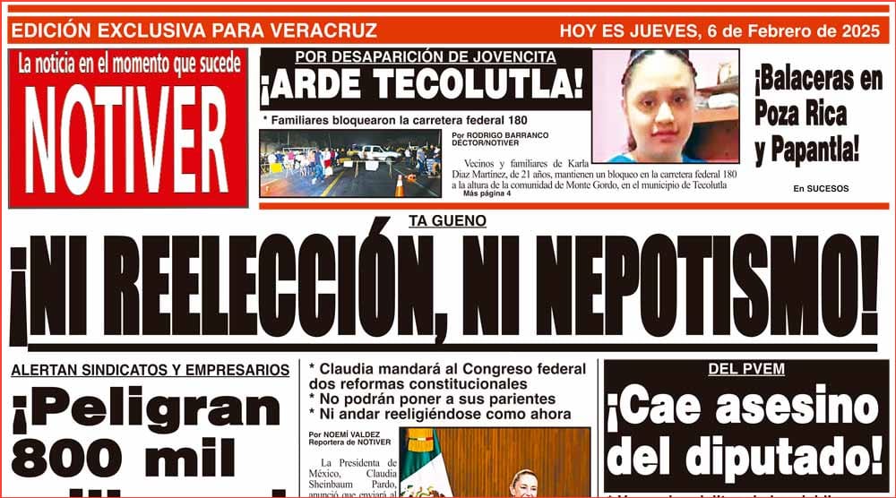 PRIMERA LA PORTADA - JUEVES 6 DE FEBRERO 2025 TA GUENO - *CLAUDIA MANDARÁ AL CONGRESO FEDERAL DOS REFORMAS CONSTITUCIONALES *NO PODRÁN PONER A SUS PARIENTES *NI ANDAR REELIGIÉNDOSE COMO AHORA 6 febrero 2025
