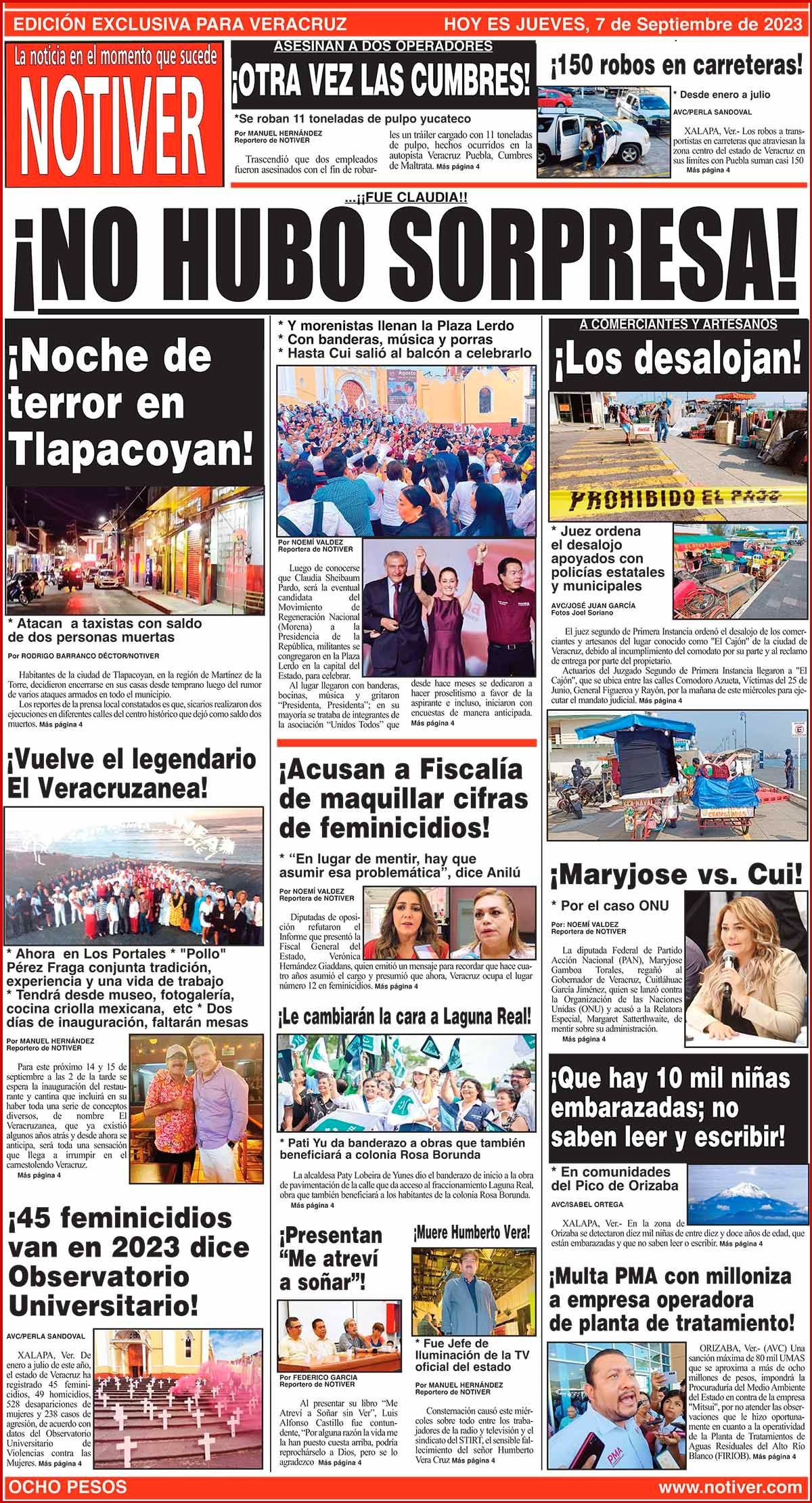 PRIMERA LA PORTADA - JUEVES, 7 DE SEPTIEMBRE 2023 ...¡¡FUE CLAUDIA!! - * Y MORENISTAS LLENAN LA PLAZA LERDO * CON BANDERAS, MÚSICA Y PORRAS * HASTA CUI SALIÓ AL BALCÓN A CELEBRARLO 7 septiembre 2023 Y LOS ANUNCIOS... Cotice su Anuncio Su Correo Electrónico: Texto: Enviar
