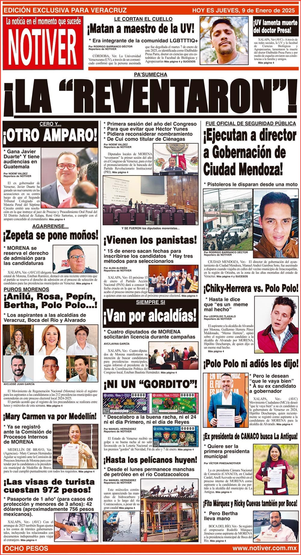 PRIMERA LA PORTADA - JUEVES 9 DE ENERO 2025 PA’SUMECHA - *PRIMERA SESIÓN DEL AÑO DEL CONGRESO *PARA QUE EVITAR QUE HÉCTOR YUNES *PIDIERA RECONSIDERAR NOMBRAMIENTO *DE CUI COMO TITULAR DE CIÉNAGAS 9 enero 2025
