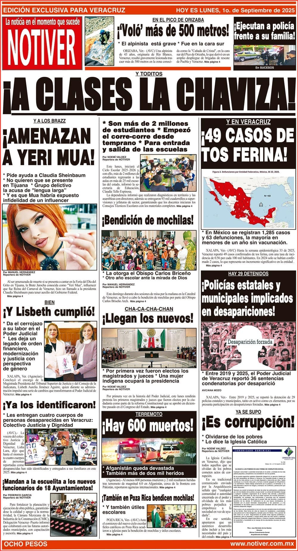 PRIMERA LA PORTADA - LUNES 1 DE SEPTIEMBRE 2025 Y TODITOS - *SON MÁS DE 2 MILLONES DE ESTUDIANTES *EMPEZÓ EL CORRE-CORRE DESDE TEMPRANO *PARA ENTRADA Y SALIDA DE LAS ESCUELAS 1 septiembre 2025