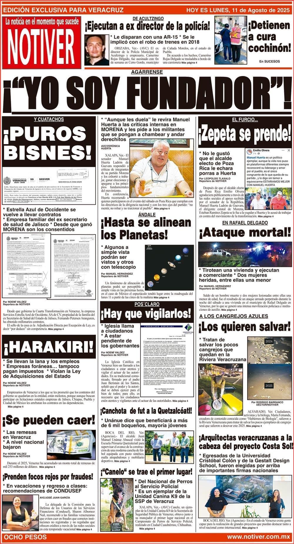 PRIMERA LA PORTADA - LUNES 11 DE AGOSTO 2025 AGÁRRENSE - *“AUNQUE LES DUELA” LE REVIRA MANUEL HUERTA A LAS CRITICAS INTERNAS EN MORENA Y LES PIDE A LOS MILITANTES QUE SE PONGAN A CHAMBEAR Y ANDAR DERECHITOS 11 agosto 2025