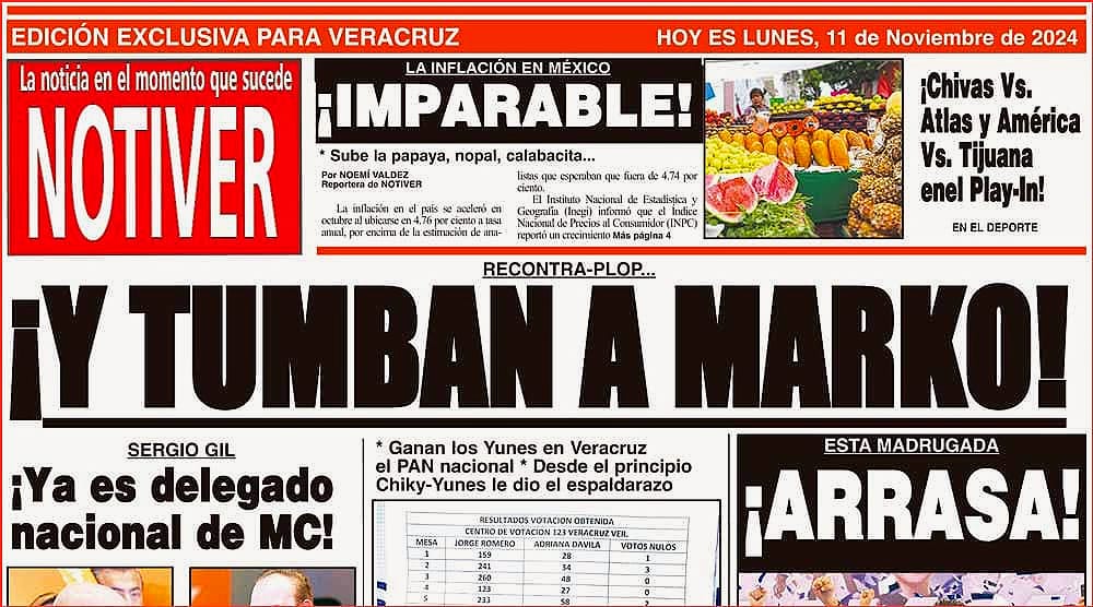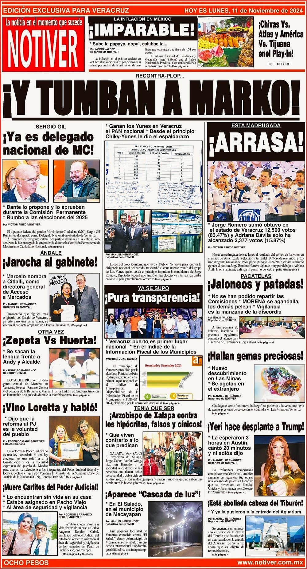 PRIMERA LA PORTADA - LUNES 11 DE NOVIEMBRE 2024 RECONTRA-PLOP... - * GANAN LOS YUNES EN VERACRUZ EL PAN NACIONAL * DESDE EL PRINCIPIO CHIKY-YUNES LE DIO EL ESPALDARAZO 11 noviembre 2024