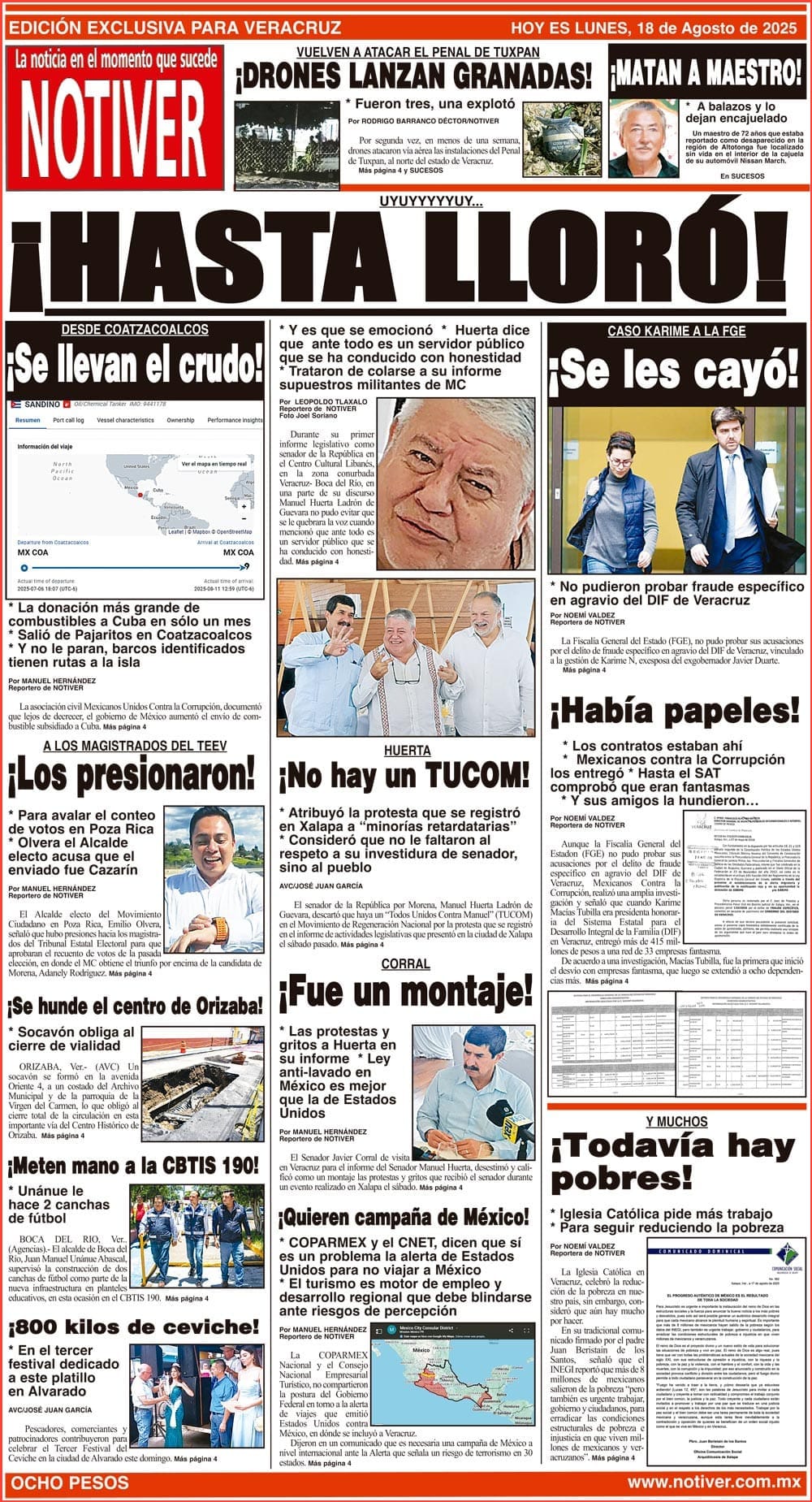PRIMERA LA PORTADA - LUNES 18 DE AGOSTO 2025 UYUYYYYYUY... - *Y ES QUE SE EMOCIONÓ *HUERTA DICE QUE ANTE TODO ES UN SERVIDOR PÚBLICO QUE SE HA CONDUCIDO CON HONESTIDAD *TRATARON DE COLARSE A SU INFORME SUPUESTROS MILITANTES DE MC 18 agosto 2025