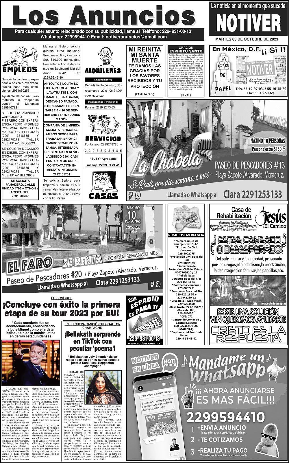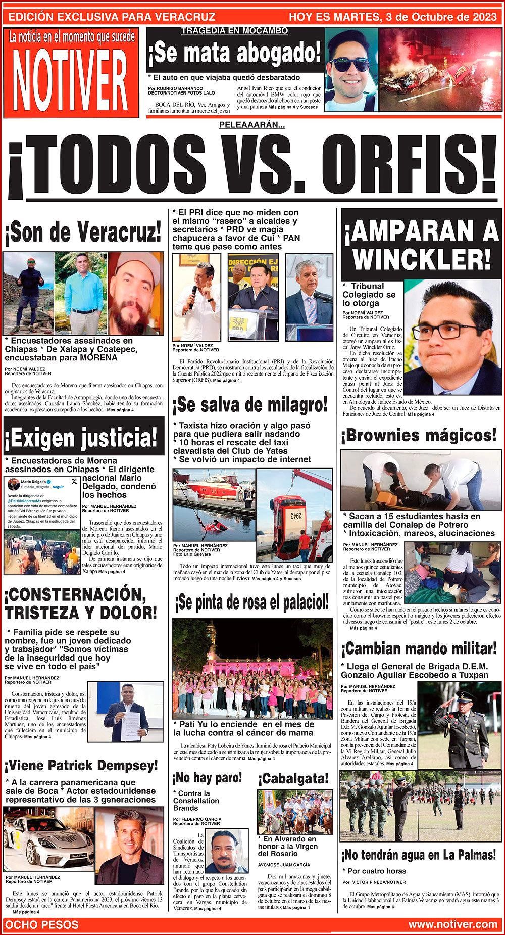 PRIMERA LA PORTADA - MARTES, 3 DE OCTUBRE 2023 PELEAAARÁN… - * EL PRI DICE QUE NO MIDEN CON EL MISMO “RASERO” A ALCALDES Y SECRETARIOS * PRD VE MAGIA CHAPUCERA A FAVOR DE CUI * PAN TEME QUE PASE COMO ANTES 3 octubre 2023 Y LOS ANUNCIOS...Cotice su Anuncio Su Correo Electrónico: Texto: Enviar