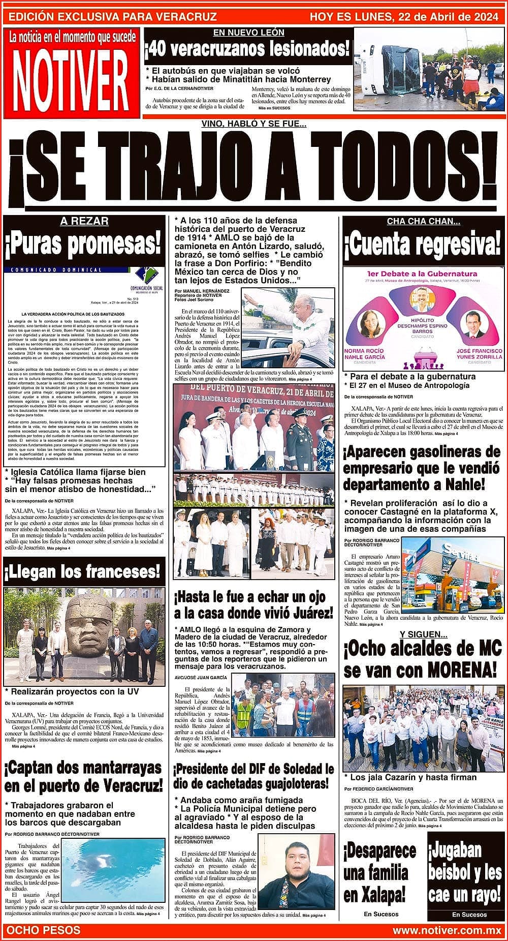 VINO, HABLÓ Y SE FUE... - * A LOS 110 AÑOS DE LA DEFENSA HISTÓRICA DEL PUERTO DE VERACRUZ DE 1914 * AMLO SE BAJÓ DE LA CAMIONETA EN ANTÓN LIZARDO, SALUDÓ, ABRAZÓ, SE TOMÓ SELFIES * LE CAMBIÓ LA FRASE A DON PORFIRIO: * "BENDITO MÉXICO TAN CERCA DE DIOS Y NO TAN LEJOS DE ESTADOS UNIDOS..."