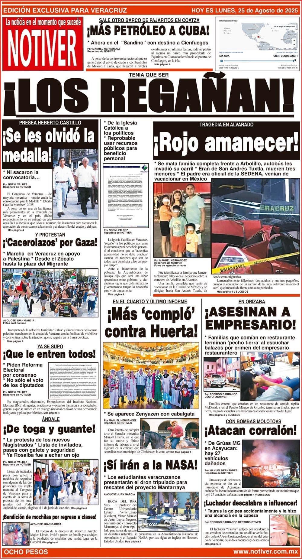 PRIMERA LA PORTADA - LUNES 25 DE AGOSTO 2025 TENIA QUE SER - *DE LA IGLESIA CATÓLICA A LOS POLÍTICOS *REPROBABLE USAR RECURSOS PÚBLICOS PARA BENEFICIO PERSONAL 25 agosto 2025