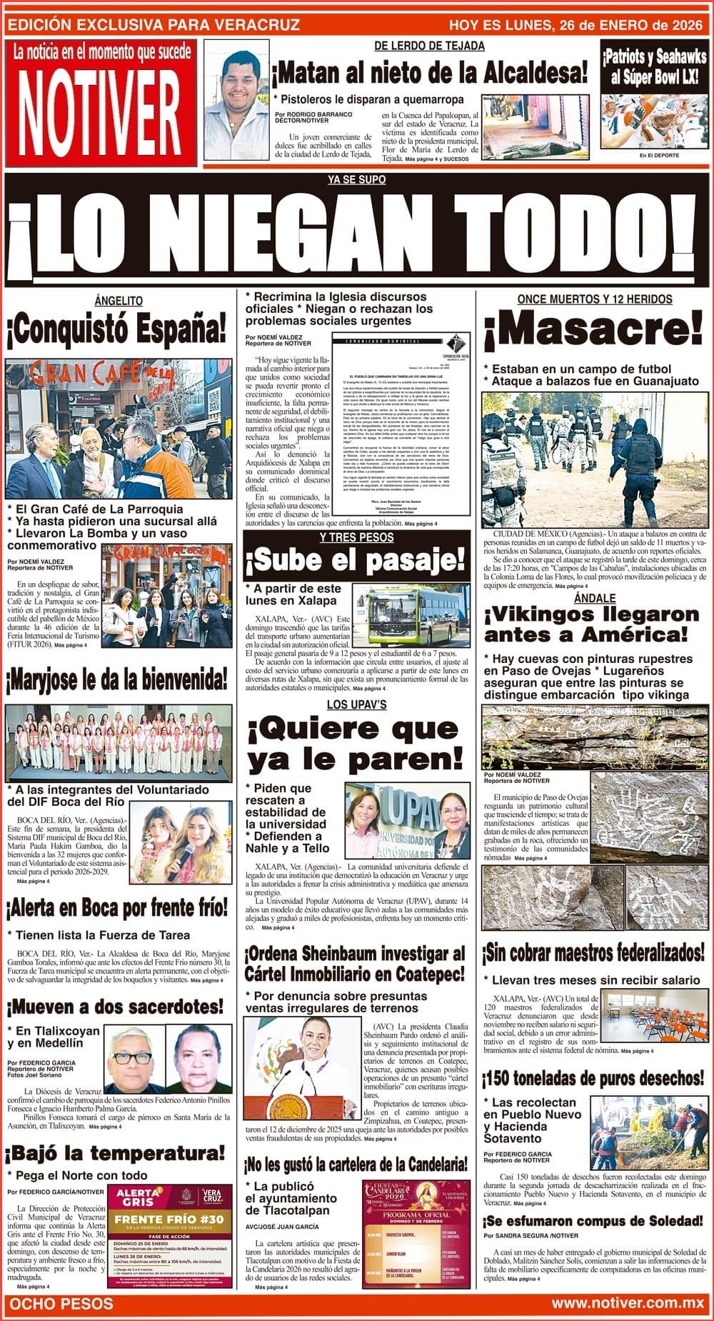 PRIMERA LA PORTADA - LUNES 26 DE ENERO 2026 YA SE SUPO - *RECRIMINA LA IGLESIA DISCURSOS OFICIALES *NIEGAN O RECHAZAN LOS PROBLEMAS SOCIALES URGENTES 26 enero 2026