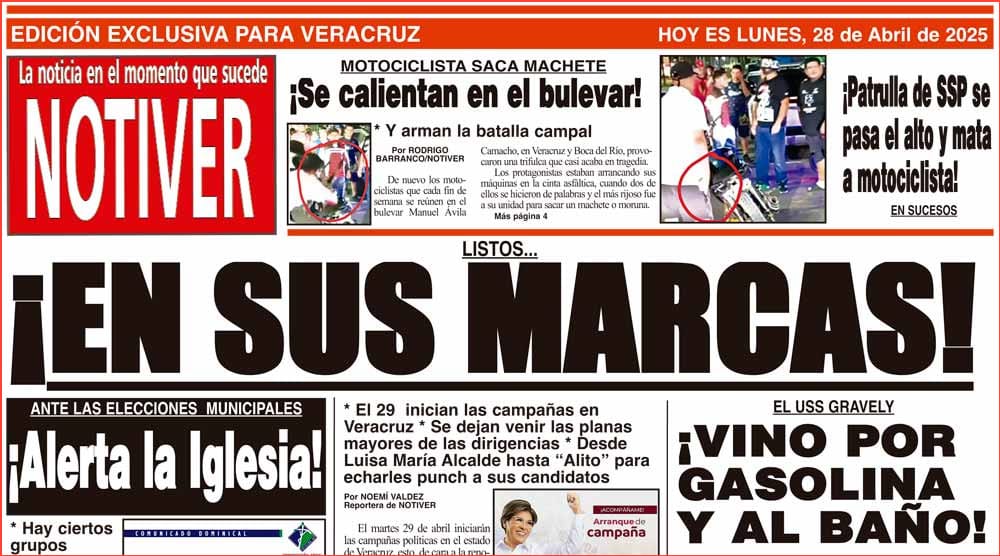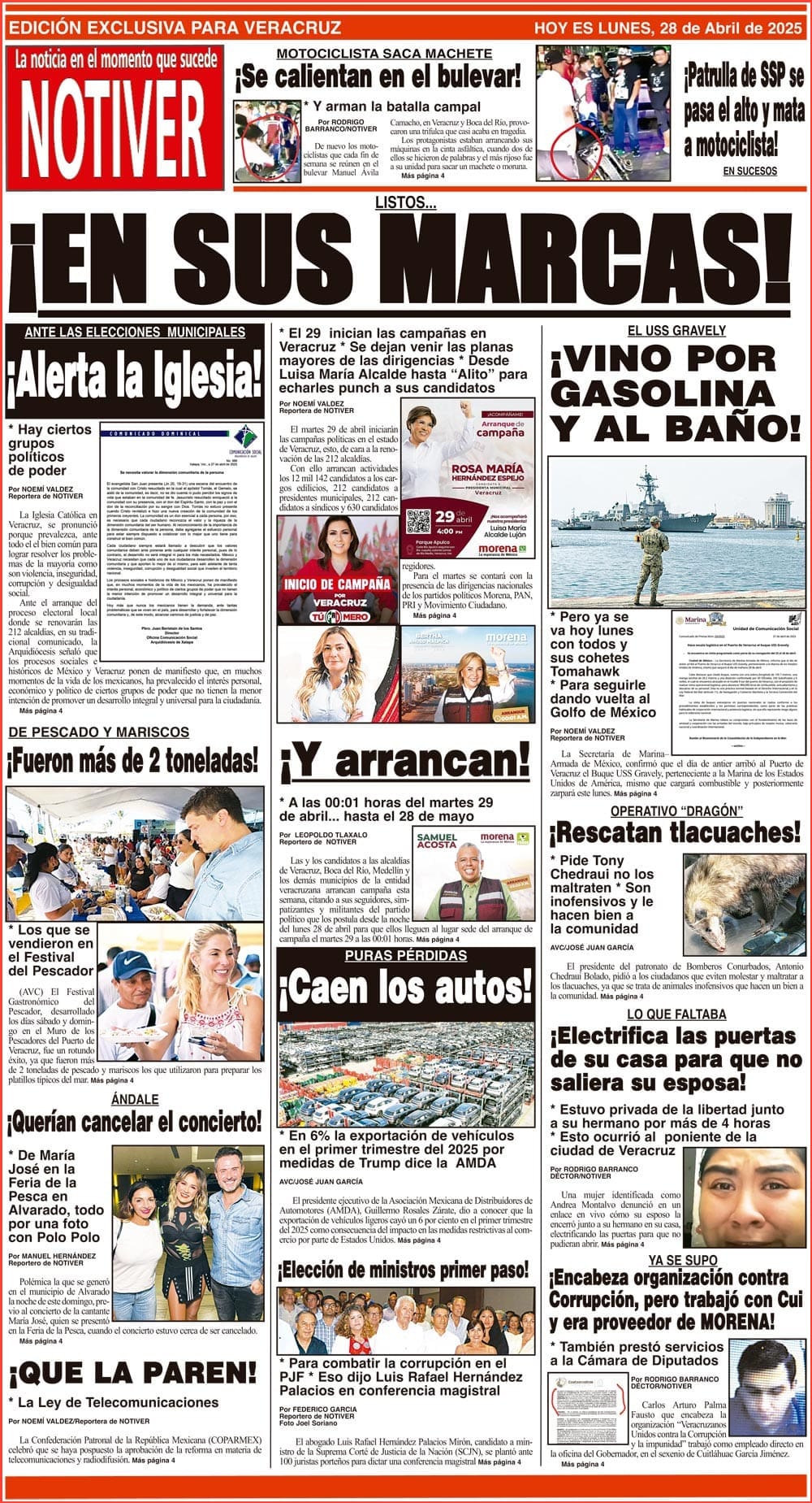 PRIMERA LA PORTADA - LUNES 28 DE ABRIL 2025 LISTOS... - *EL 29 INICIAN LAS CAMPAÑAS EN VERACRUZ *SE DEJAN VENIR LAS PLANAS MAYORES DE LAS DIRIGENCIAS *DESDE LUISA MARÍA ALCALDE HASTA “ALITO” PARA ECHARLES PUNCH A SUS CANDIDATOS 28 abril 2025